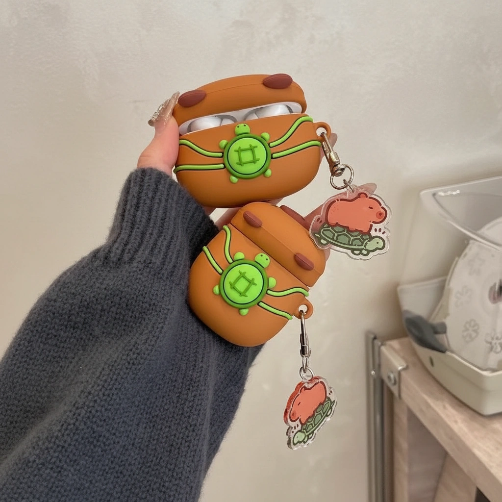 Cute Silicone Capybara AirPods Case with Turtle Backpack & Acrylic Charm – For Gen 1/2/3 & Pro