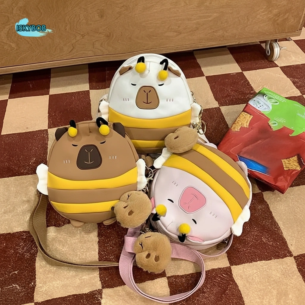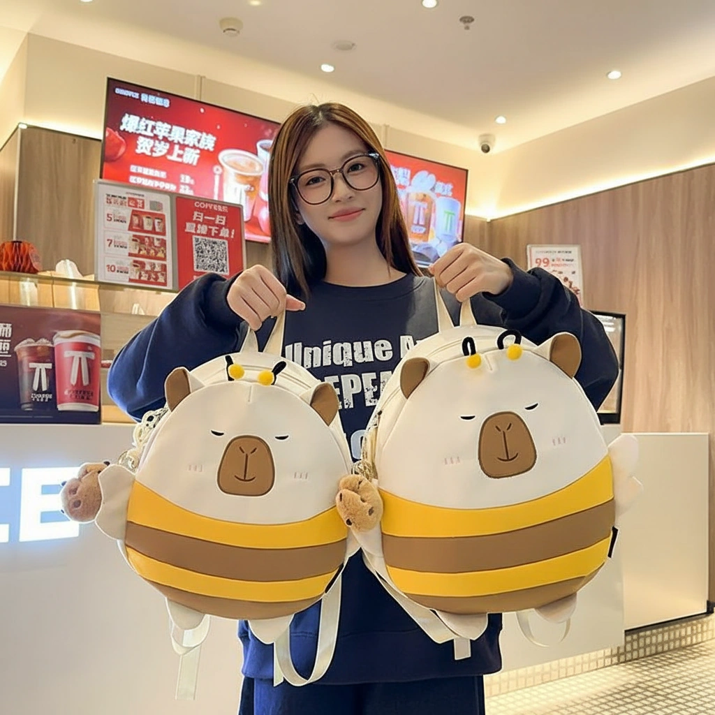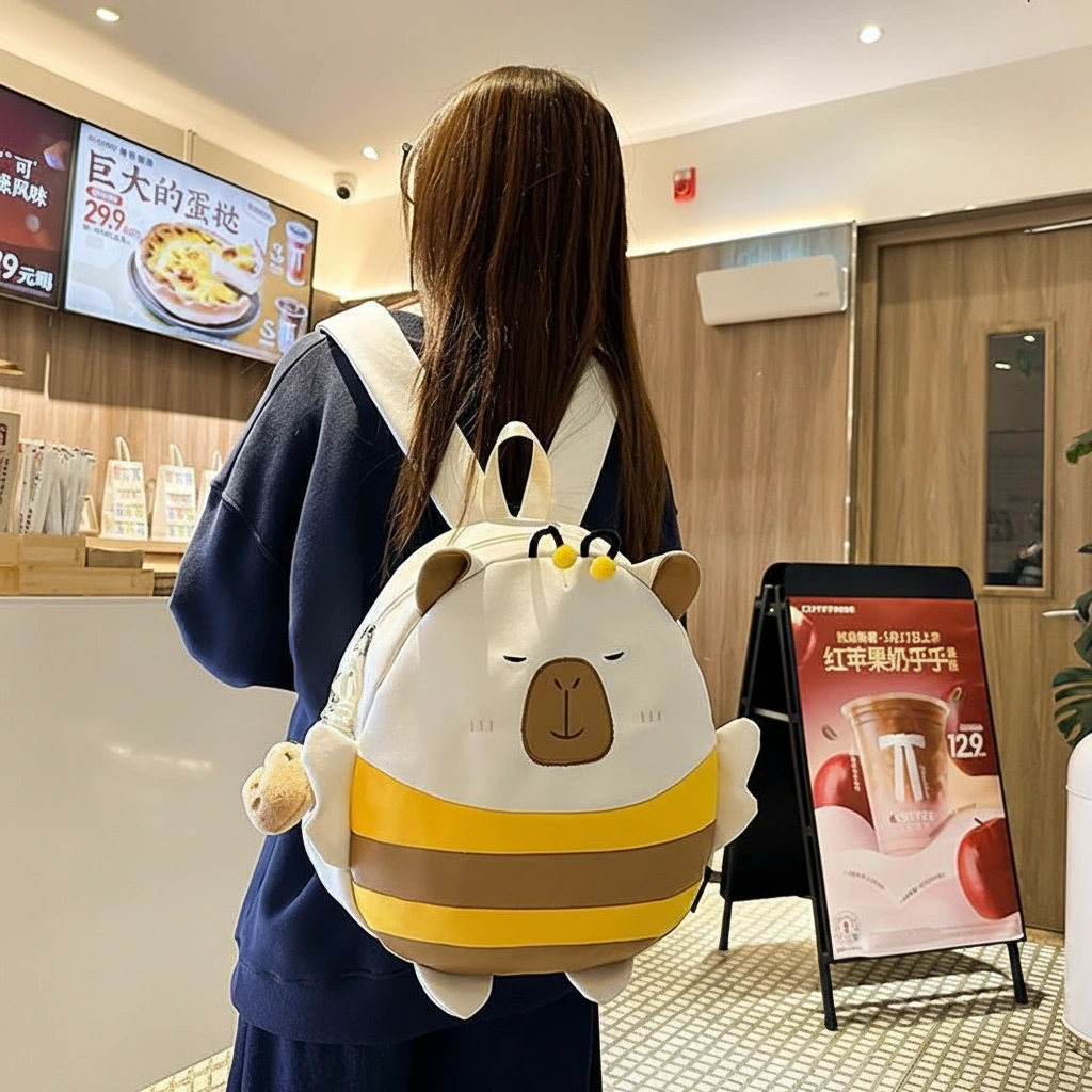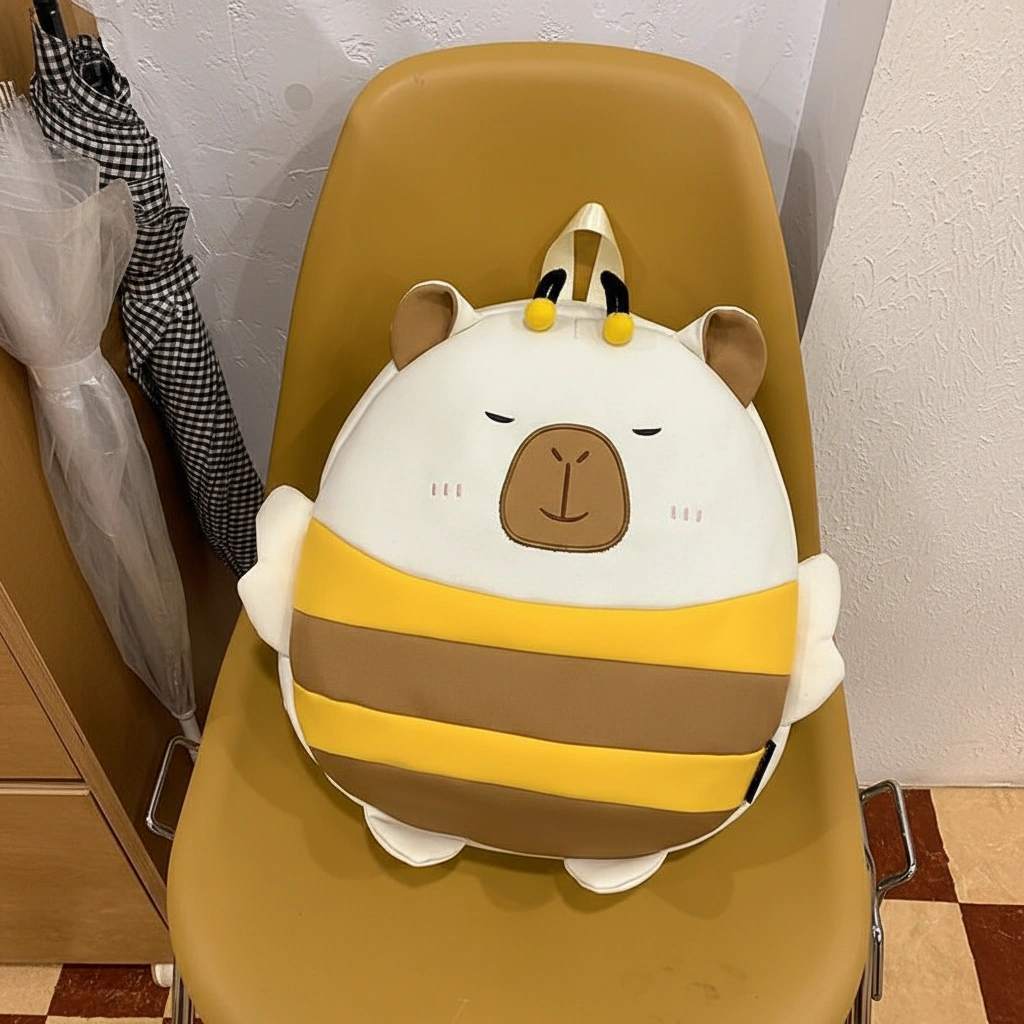 Cute Capybara Bee Backpack with Wings – Soft School Bag (3 Colors, 2 Sizes)