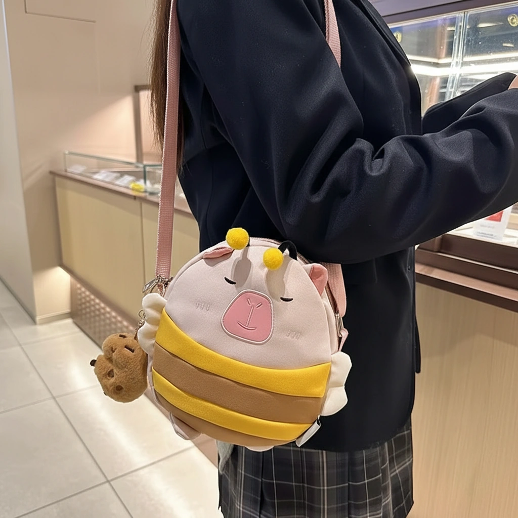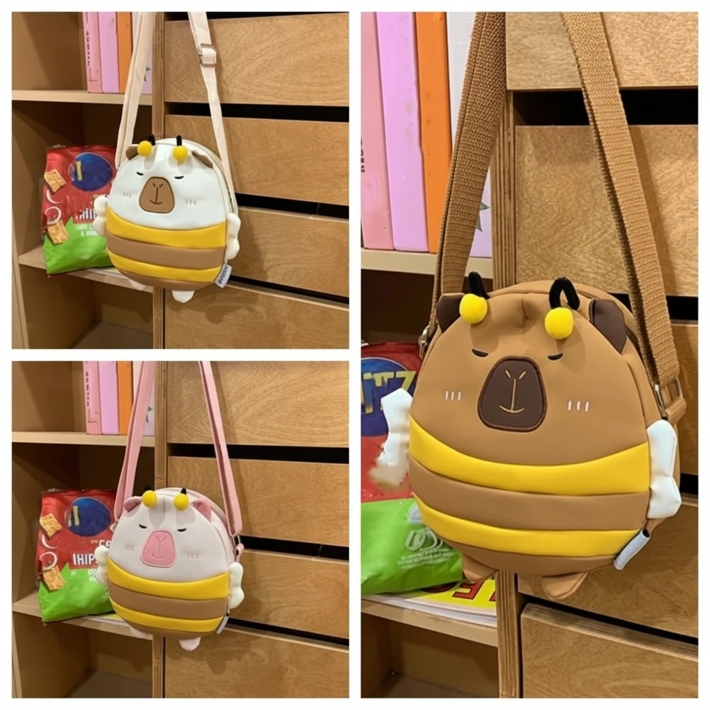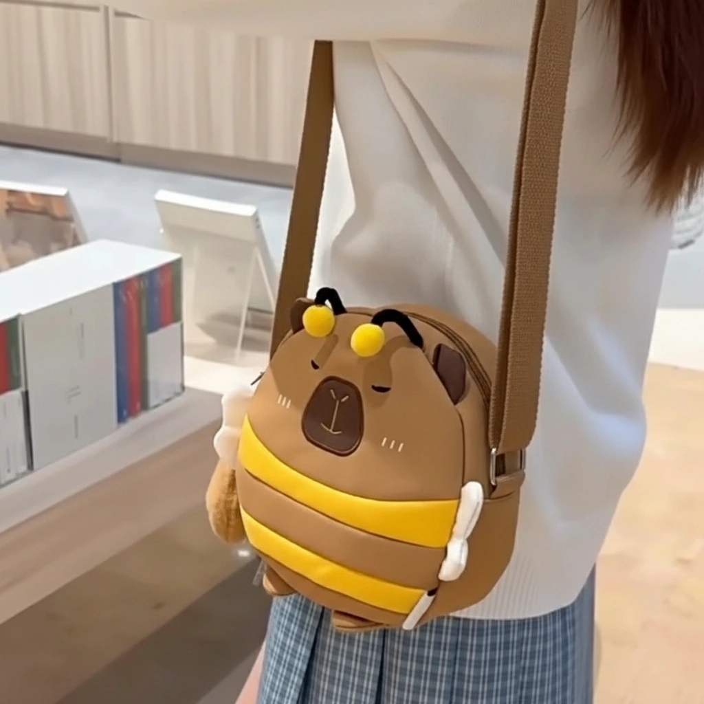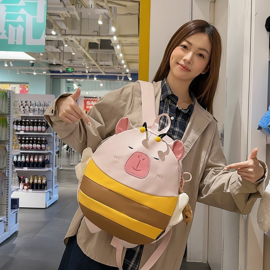 Cute Capybara Bee Backpack with Wings – Soft School Bag (3 Colors, 2 Sizes)
