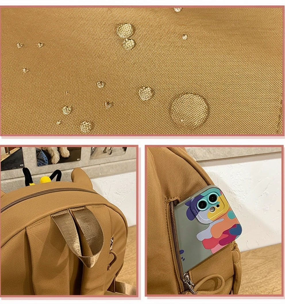 The bag features a unique round shape with bright yellow and brown bee stripes across the belly. To complete the costume, it has tiny white fabric wings on the sides and wiggly little antennae on top. It’s the perfect lightweight bag for school, field trips, or just flying around the garden.