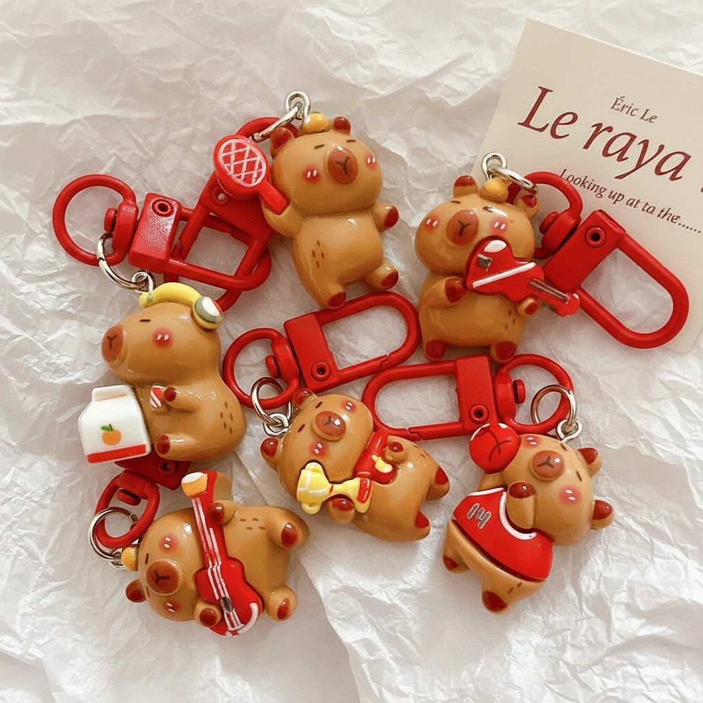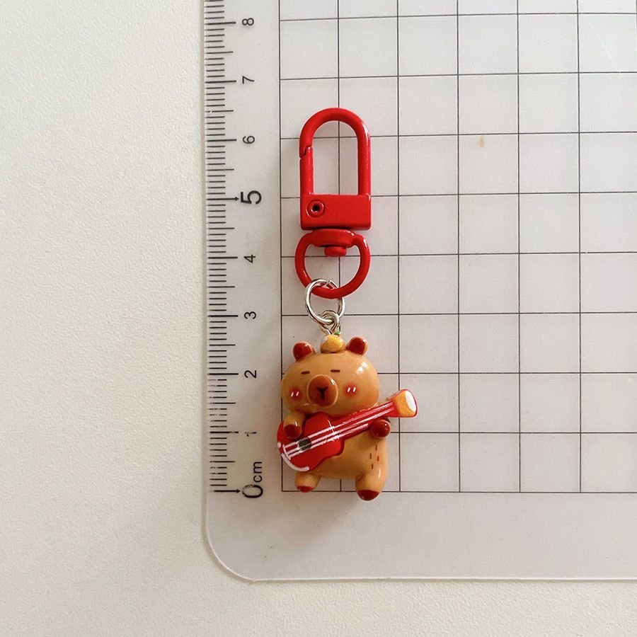 6-Piece Cute Capybara Bag Charm Set – Resin Sports & Music Keychains