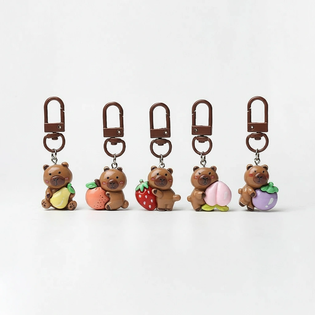 5pcs Fruit Series Capybara Bag Charm Set – Cute Resin Keychains (Strawberry, Peach & More)