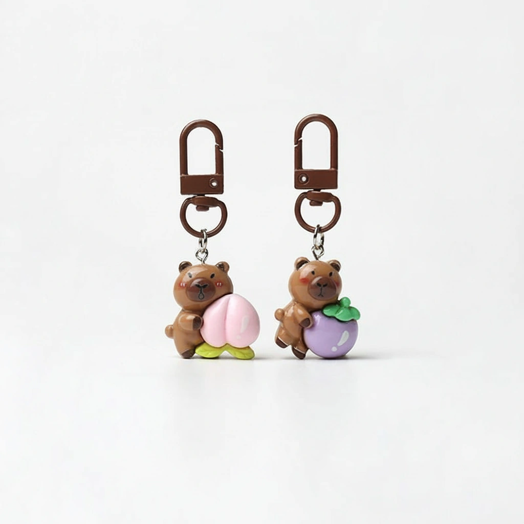 Crafted from high-quality resin with a glossy finish, each capybara in this set is hugging a different delicious fruit. Whether you split them up to match your different bags or share them with your “squad,” these charms add a perfect touch of kawaii personality to backpacks, totes, or purses.