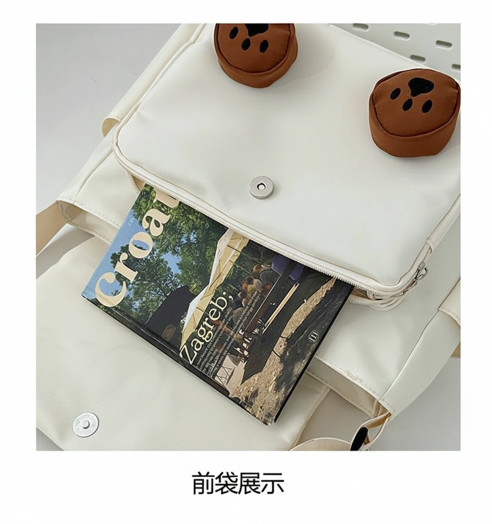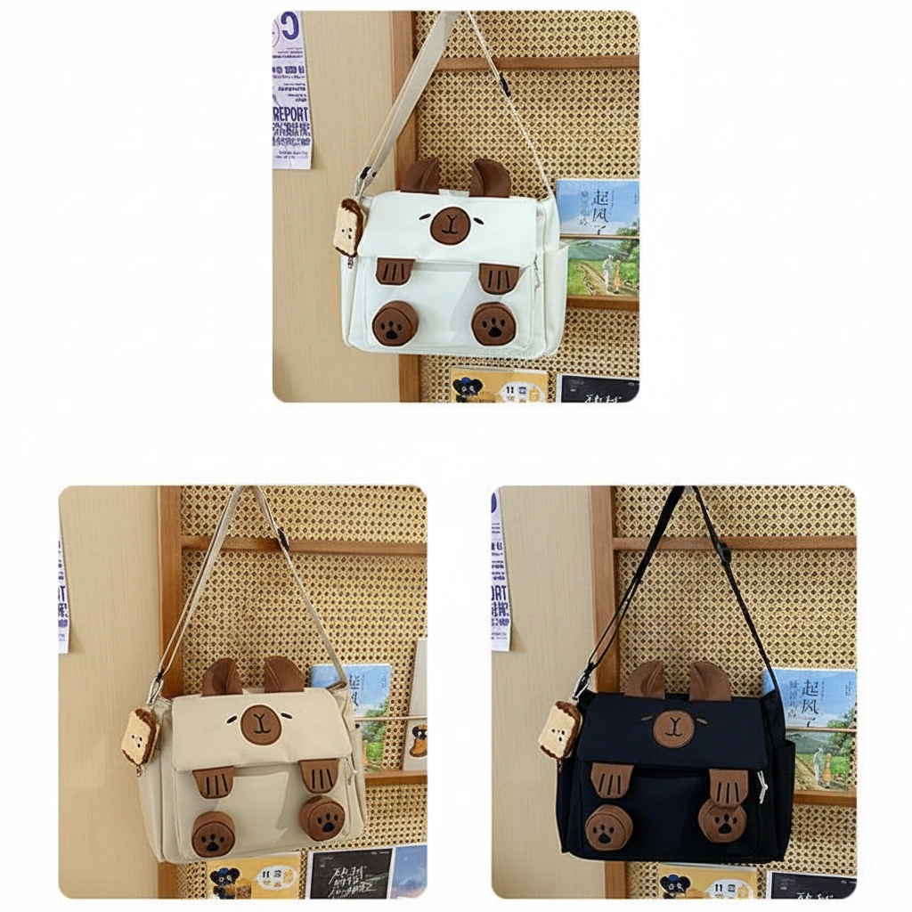 Capybara Crossbody Bag Canvas School Satchel – 3D Ears & Paws (3 Colors)