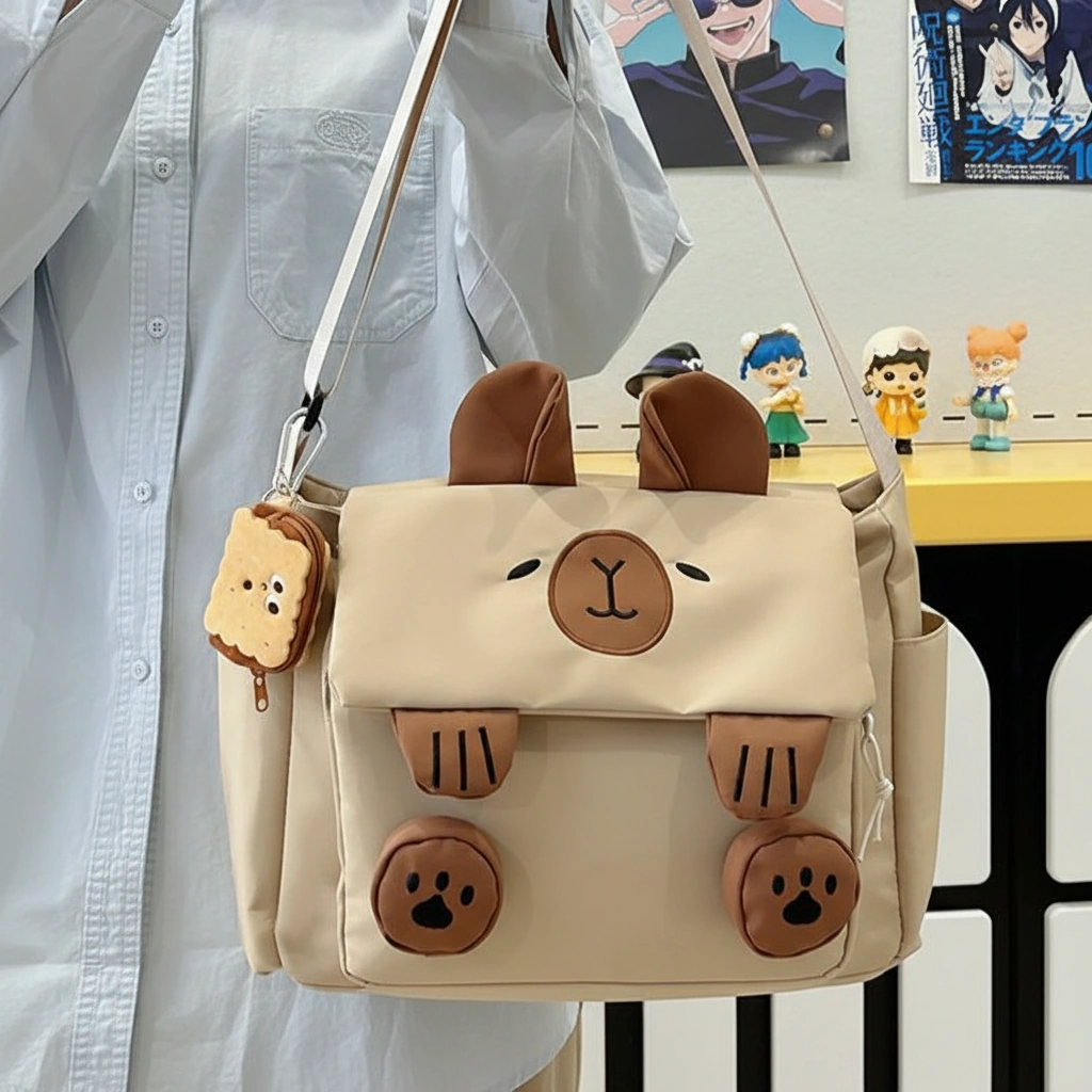 The Cutest Crossbody for School & Daily Life Transform your daily commute or study session into a fun adventure with this Capybara Crossbody Bag. Designed for those who need practical storage but refuse to sacrifice style, this satchel turns a standard bag into a lovable character. Whether you wear it across your chest for security or over your shoulder for a casual look, it’s ready to carry your books, tablet, and daily essentials with ease.