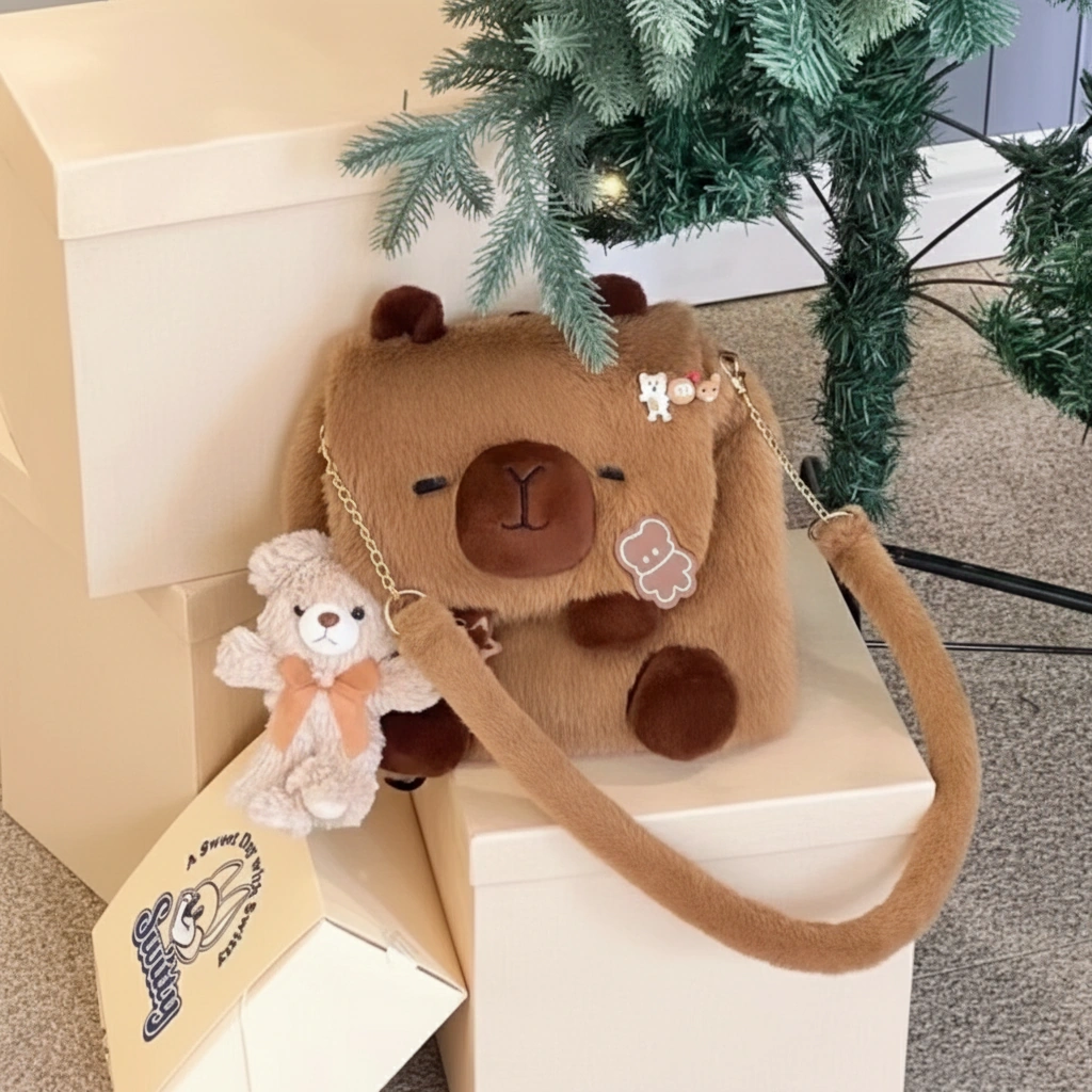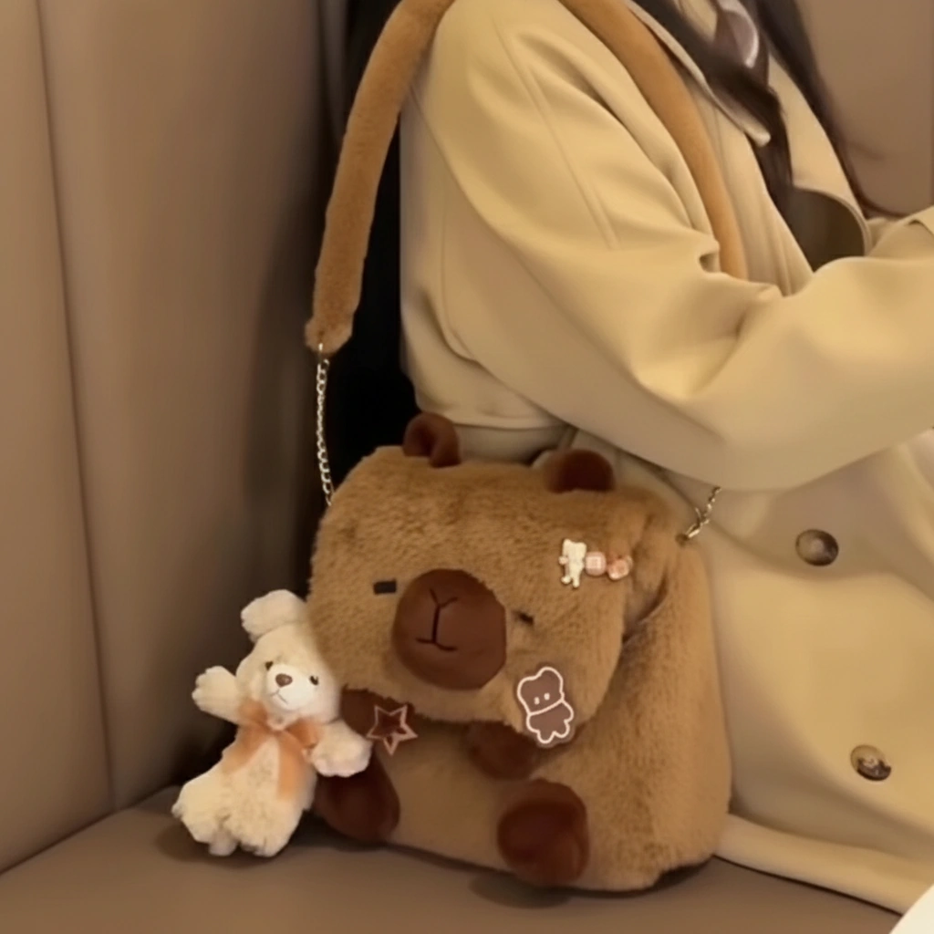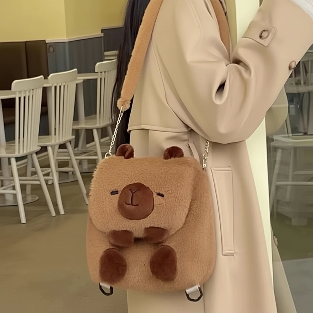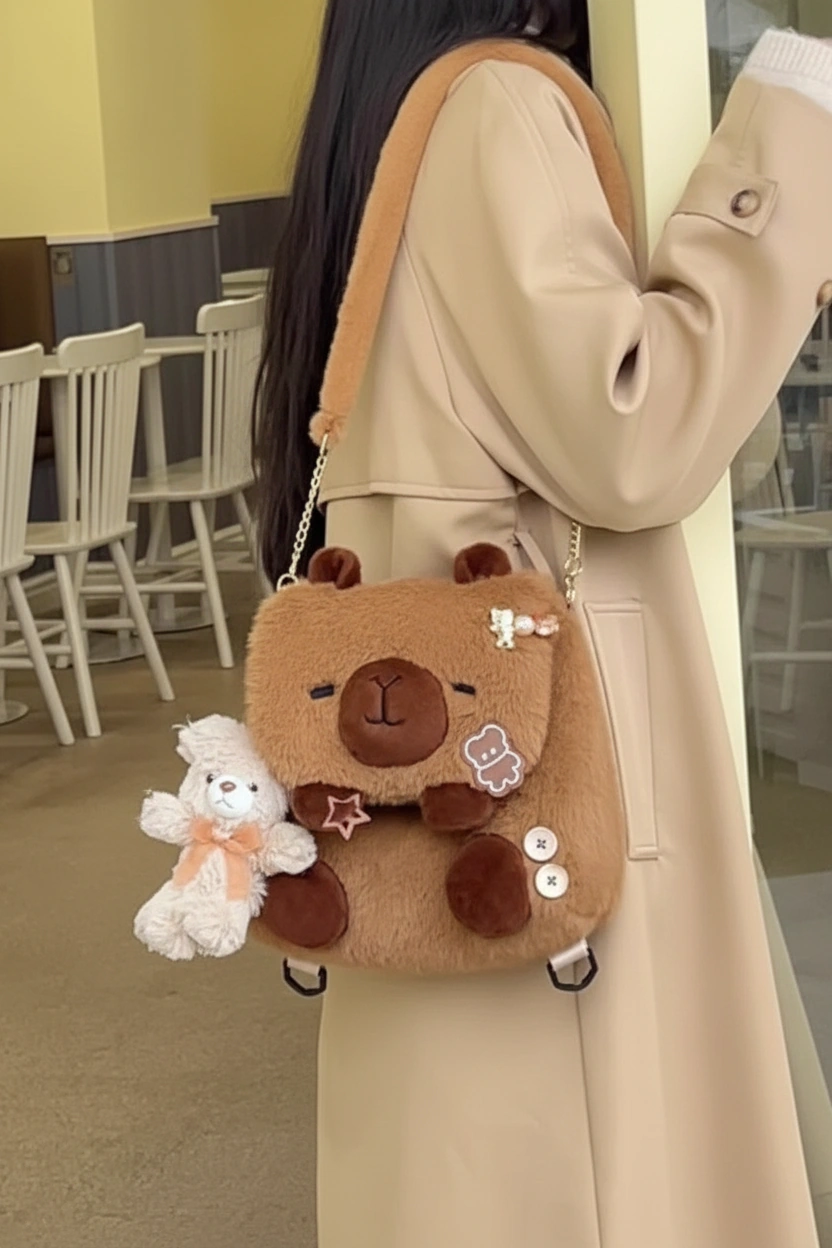 Your Blank Canvas for Cuteness Meet your new favorite creative companion! This Capybara Shoulder Bag is designed to be adorable on its own, but it shines even brighter when you make it yours. With its clean, fluffy surface and large flap, it serves as the perfect base for your favorite enamel pins, iron-on patches, or plush keychains. Whether you keep it minimalist or go maximum “kawaii” with decorations, this bag adapts to your unique vibe.