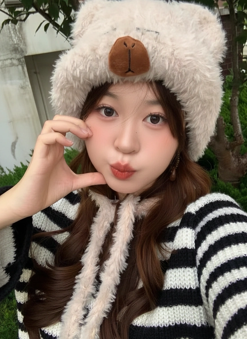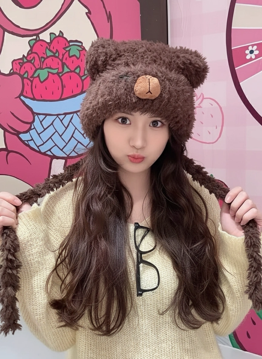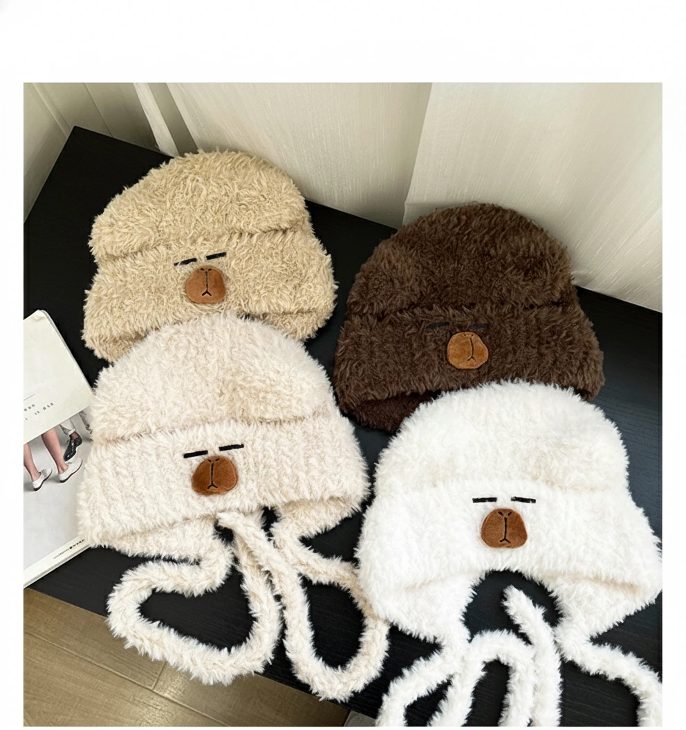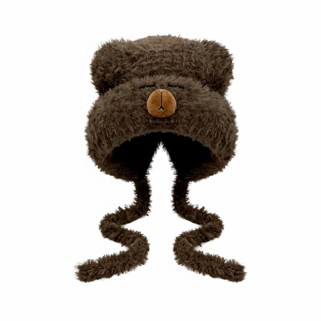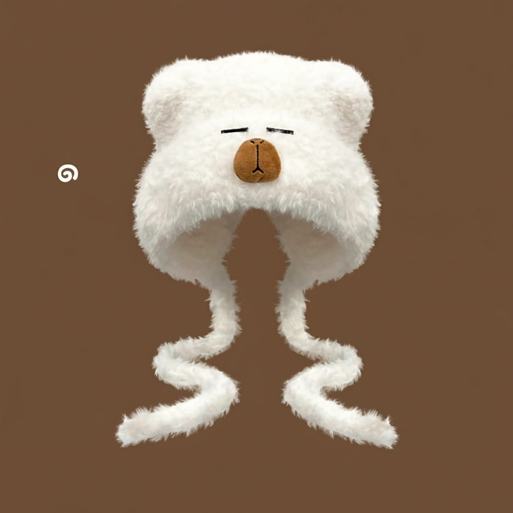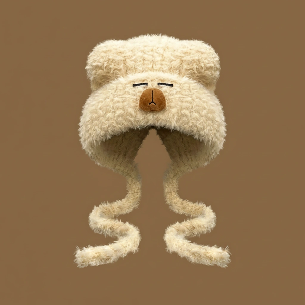 Trendy Fuzzy Capybara Hat – Shaggy Faux Fur Winter Bucket Cap with Earflaps (Adult Size)