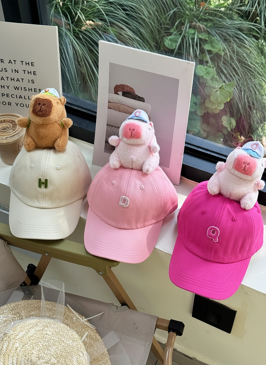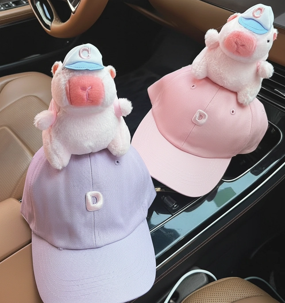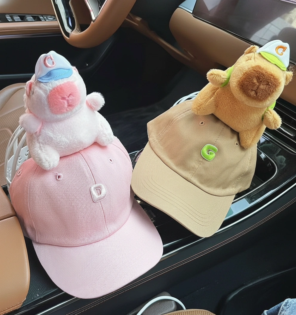 Matching Family Capybara Hat – Baseball Cap with Large Plush Toy (6 Colors, 3 Sizes)