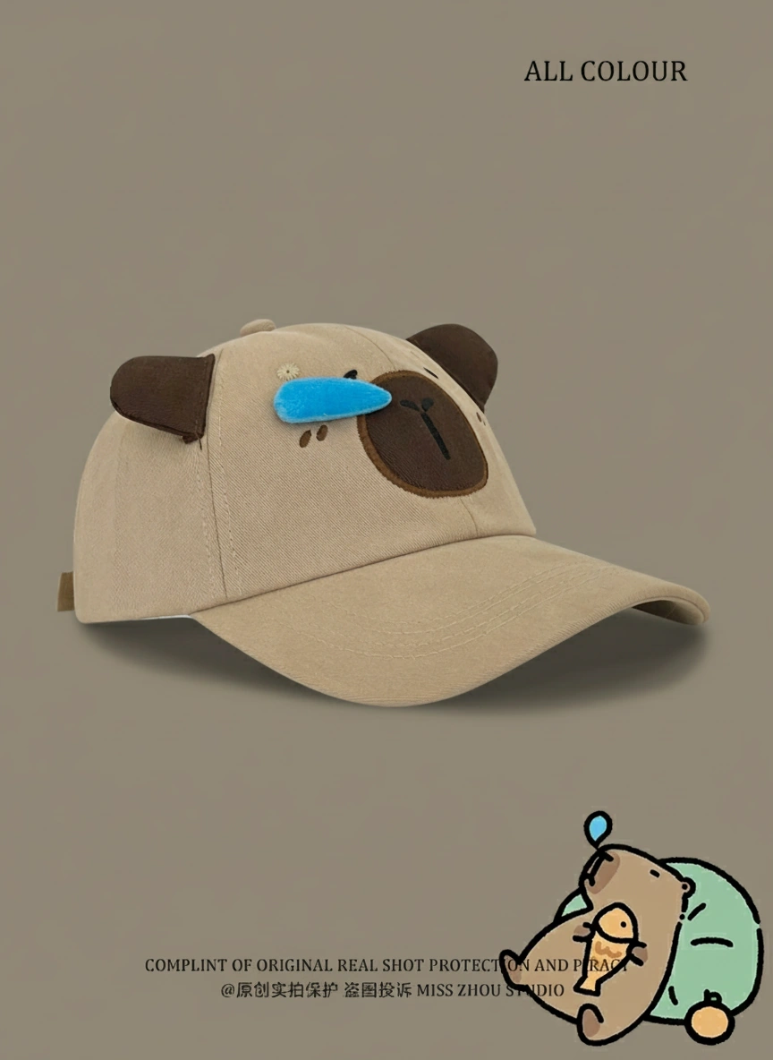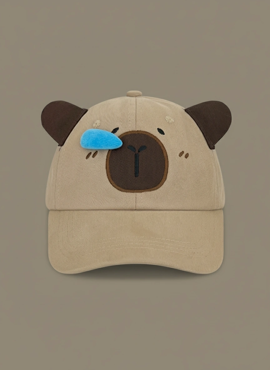 Adult Capybara Face Baseball Cap – Funny 3D “Snot Bubble” Hat (56-58cm)