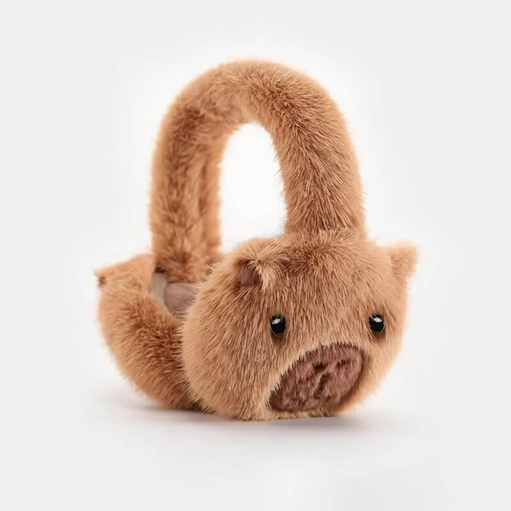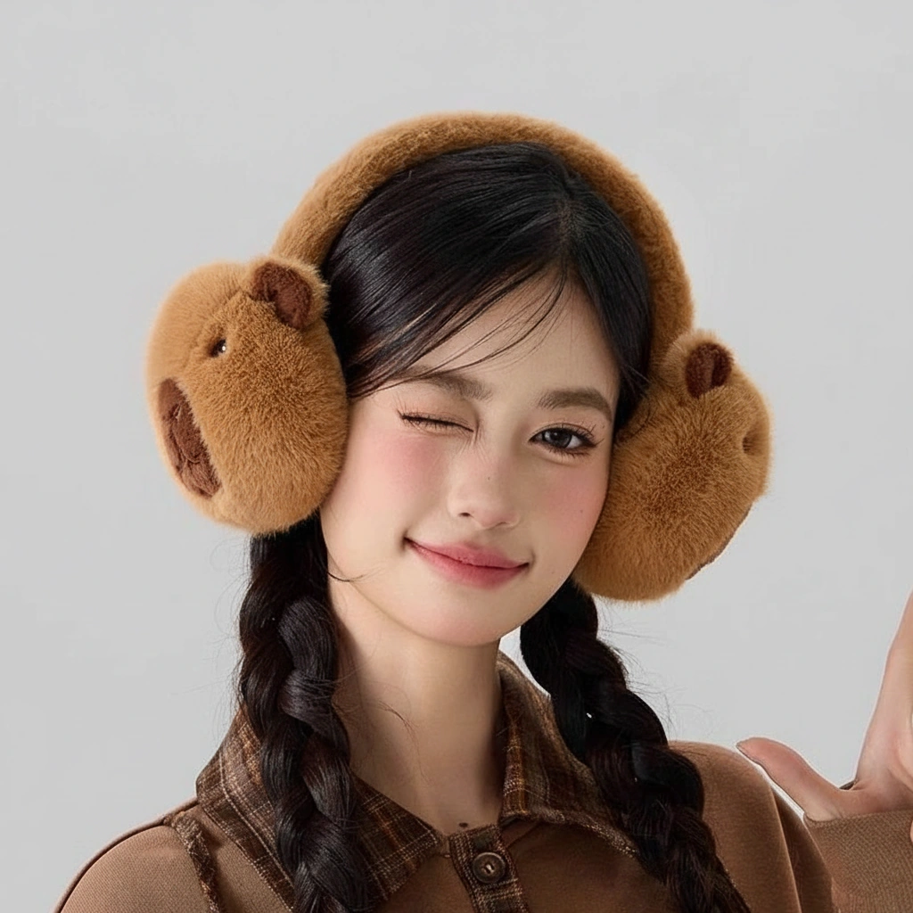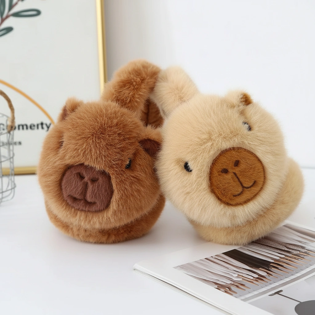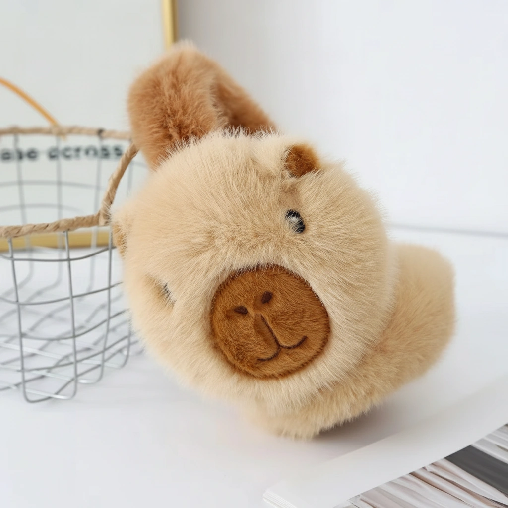 Cute Capybara Earmuffs – Foldable Plush Winter Ear Warmers (Brown & Khaki) – One Size