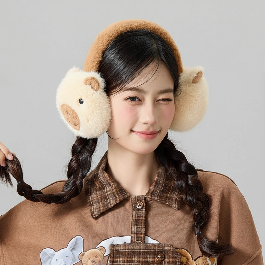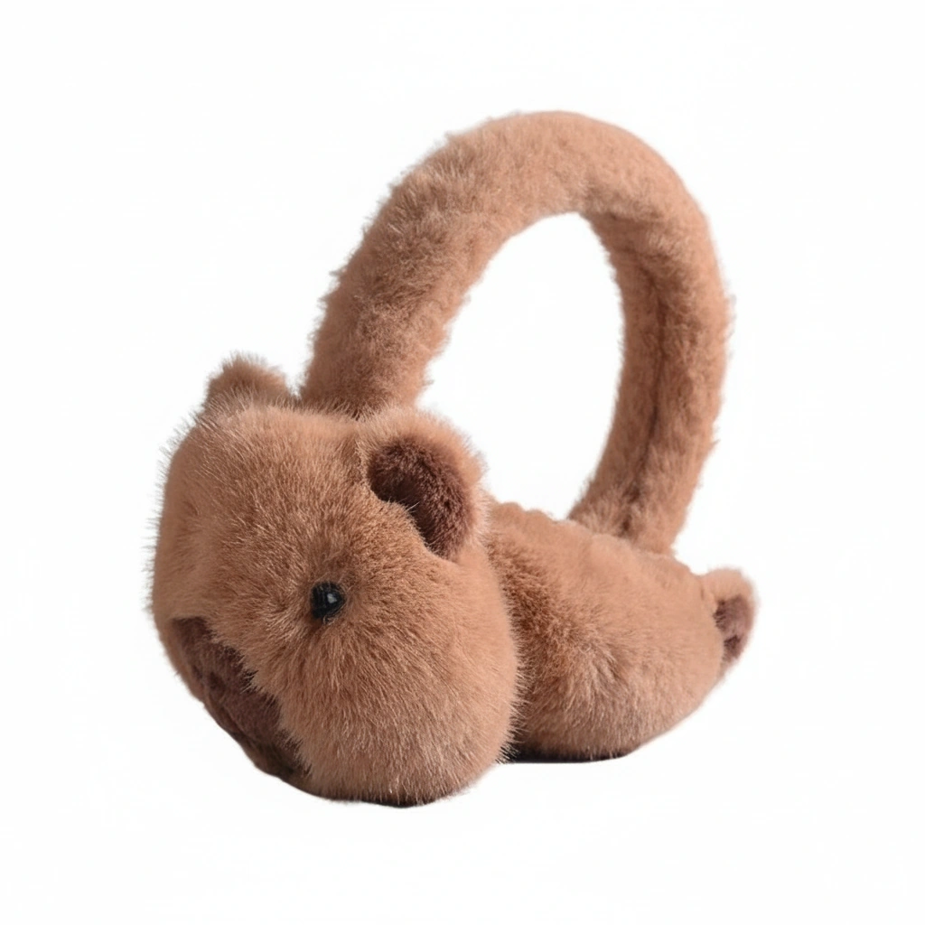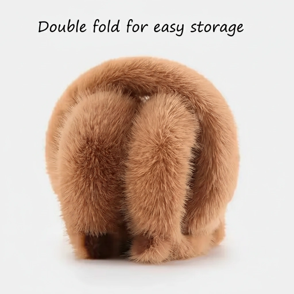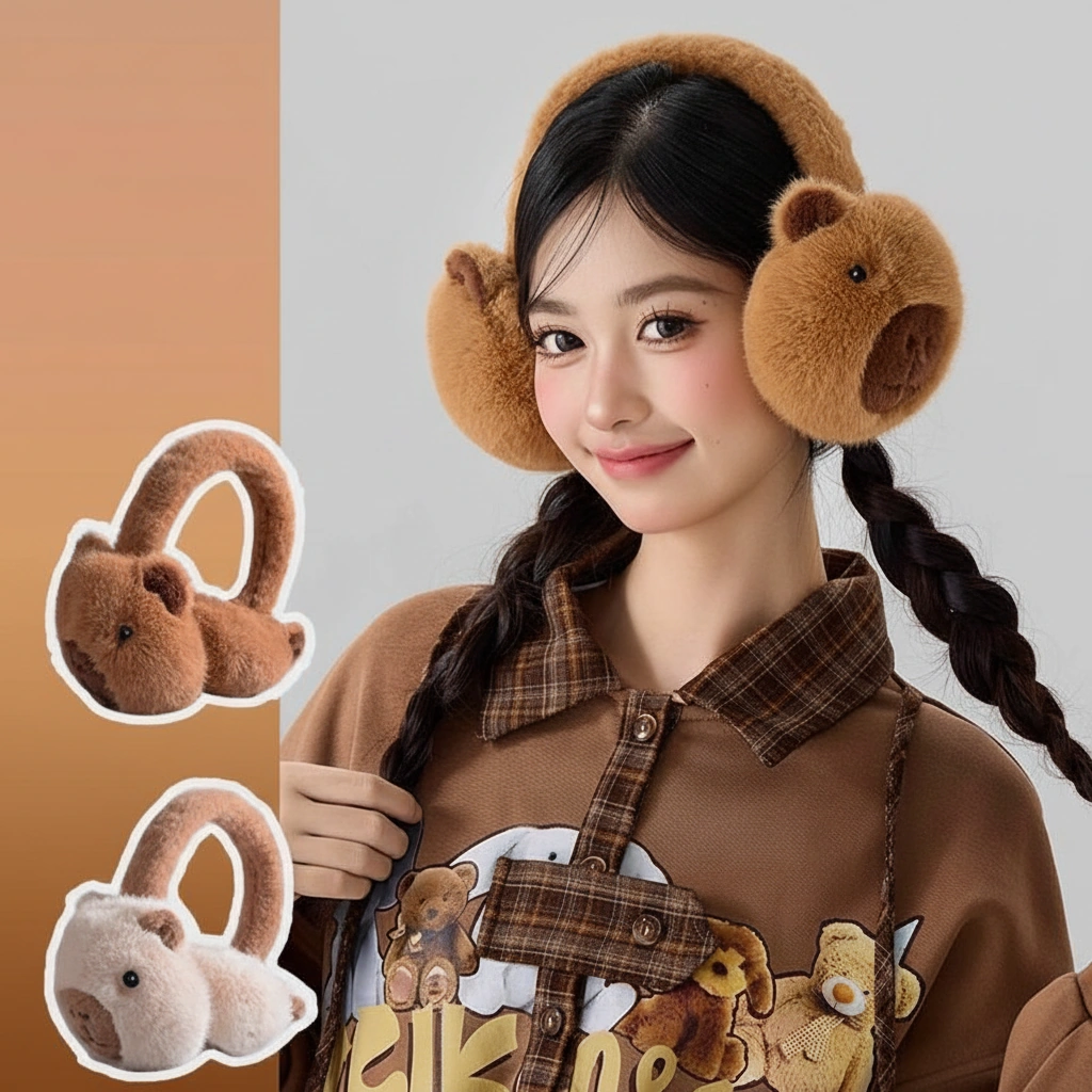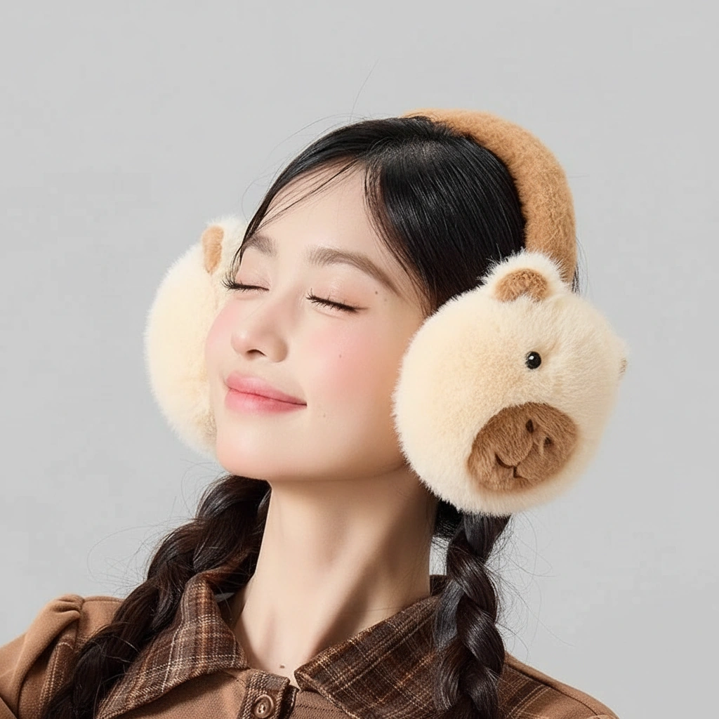 Cute Capybara Earmuffs – Foldable Plush Winter Ear Warmers (Brown & Khaki) – One Size