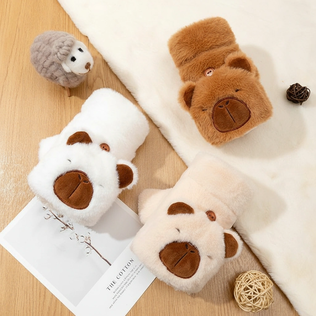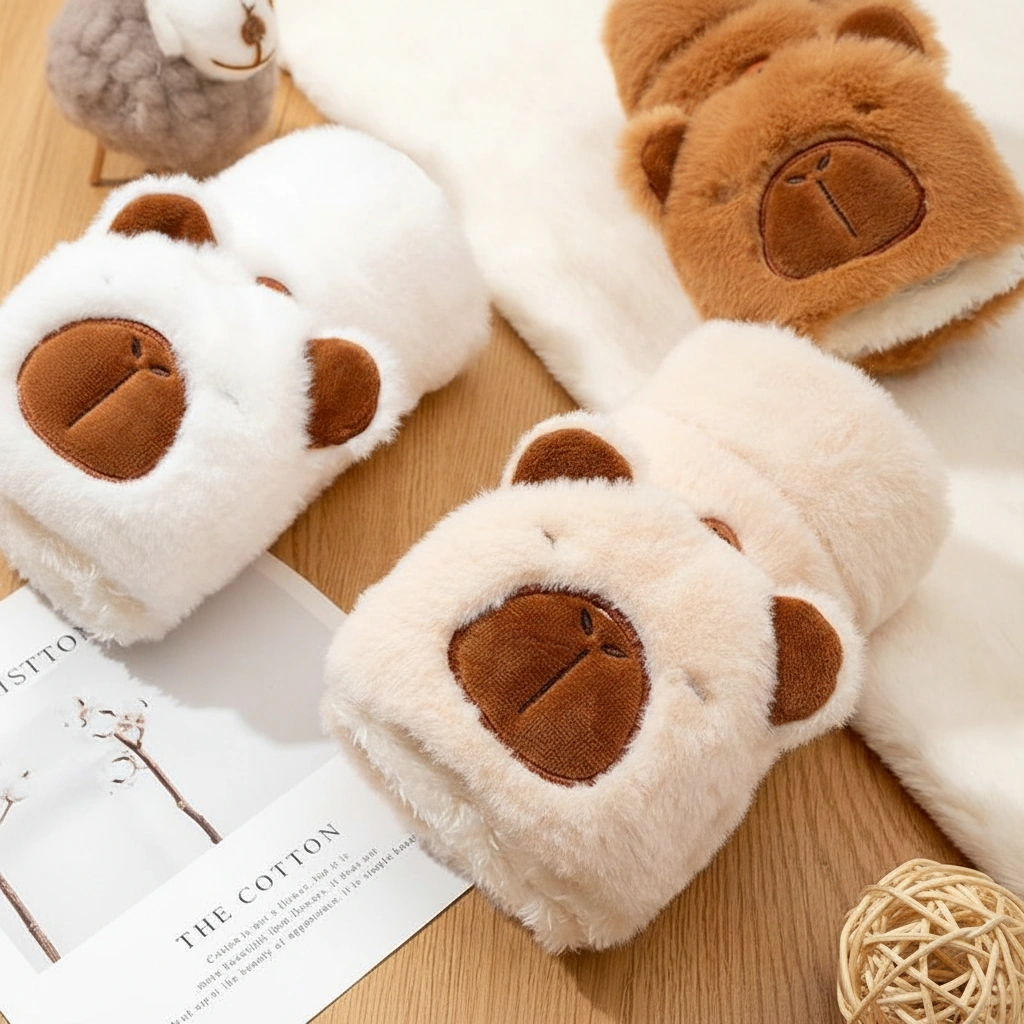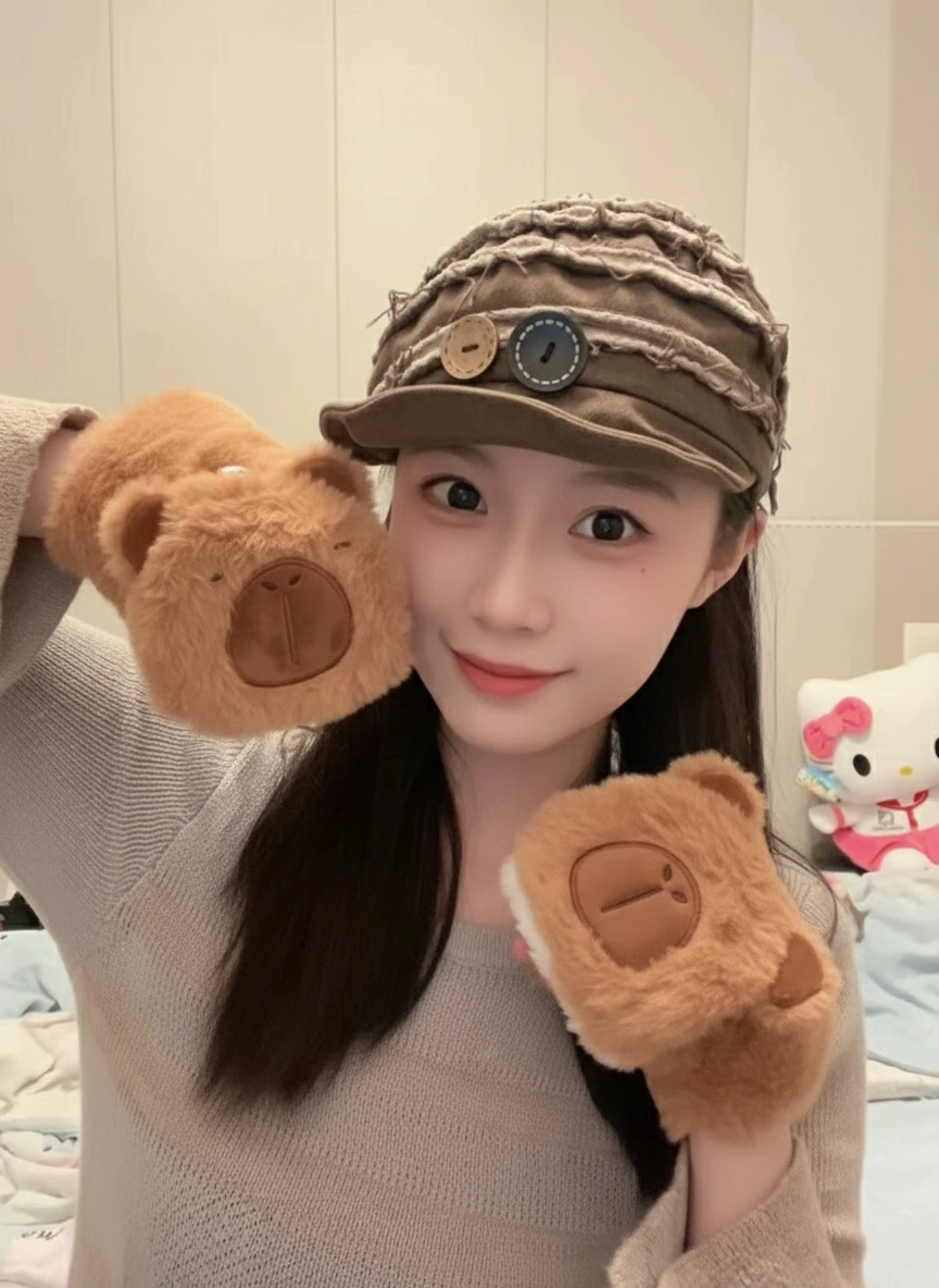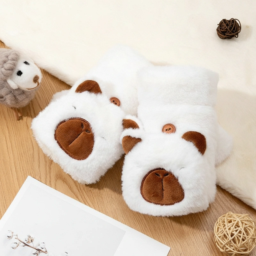 Adult Happy Capybara Mittens – Convertible Plush Gloves with Round Ears (3 Colors)