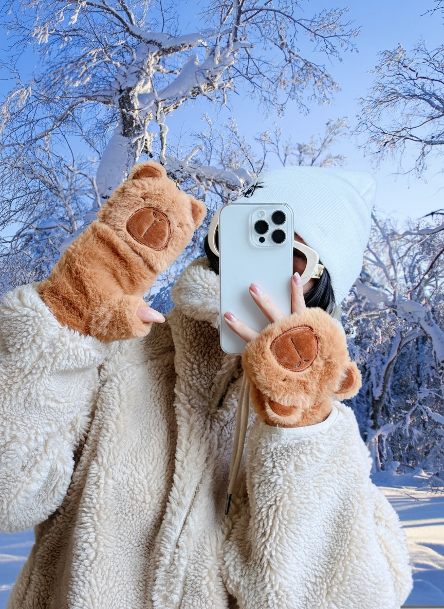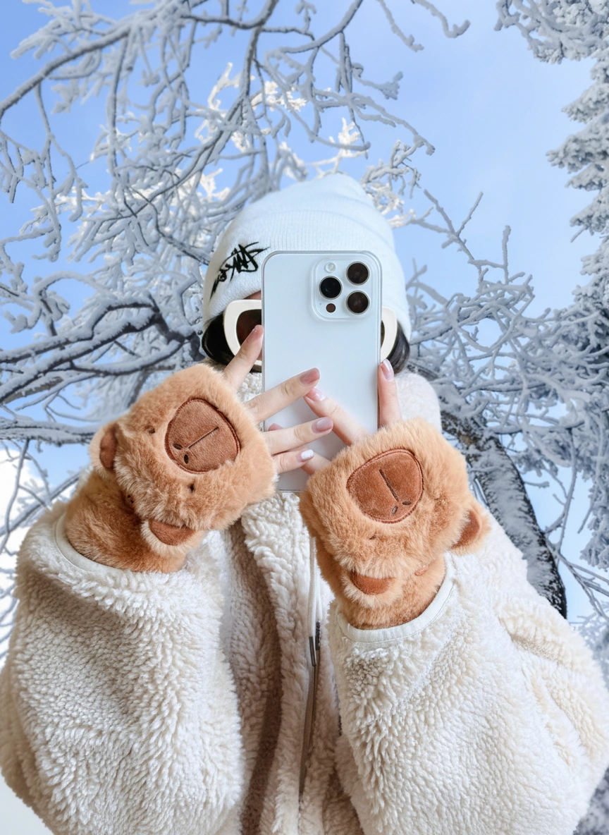• Fingerless Mode: Keep the capybara hood buttoned back to text, type, or hold your coffee cup easily.