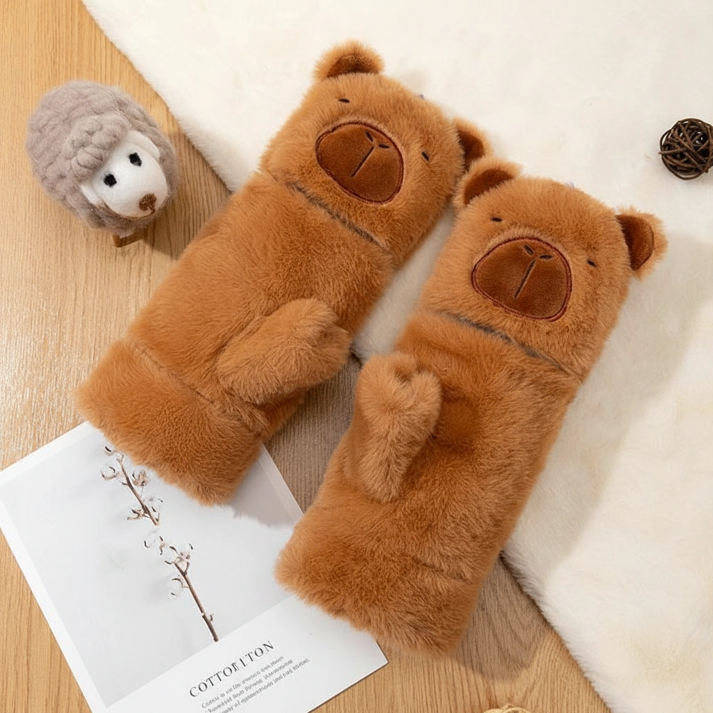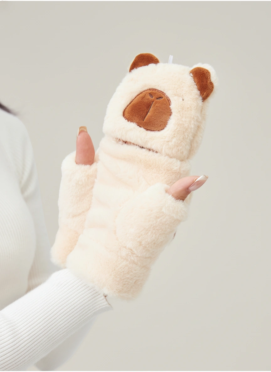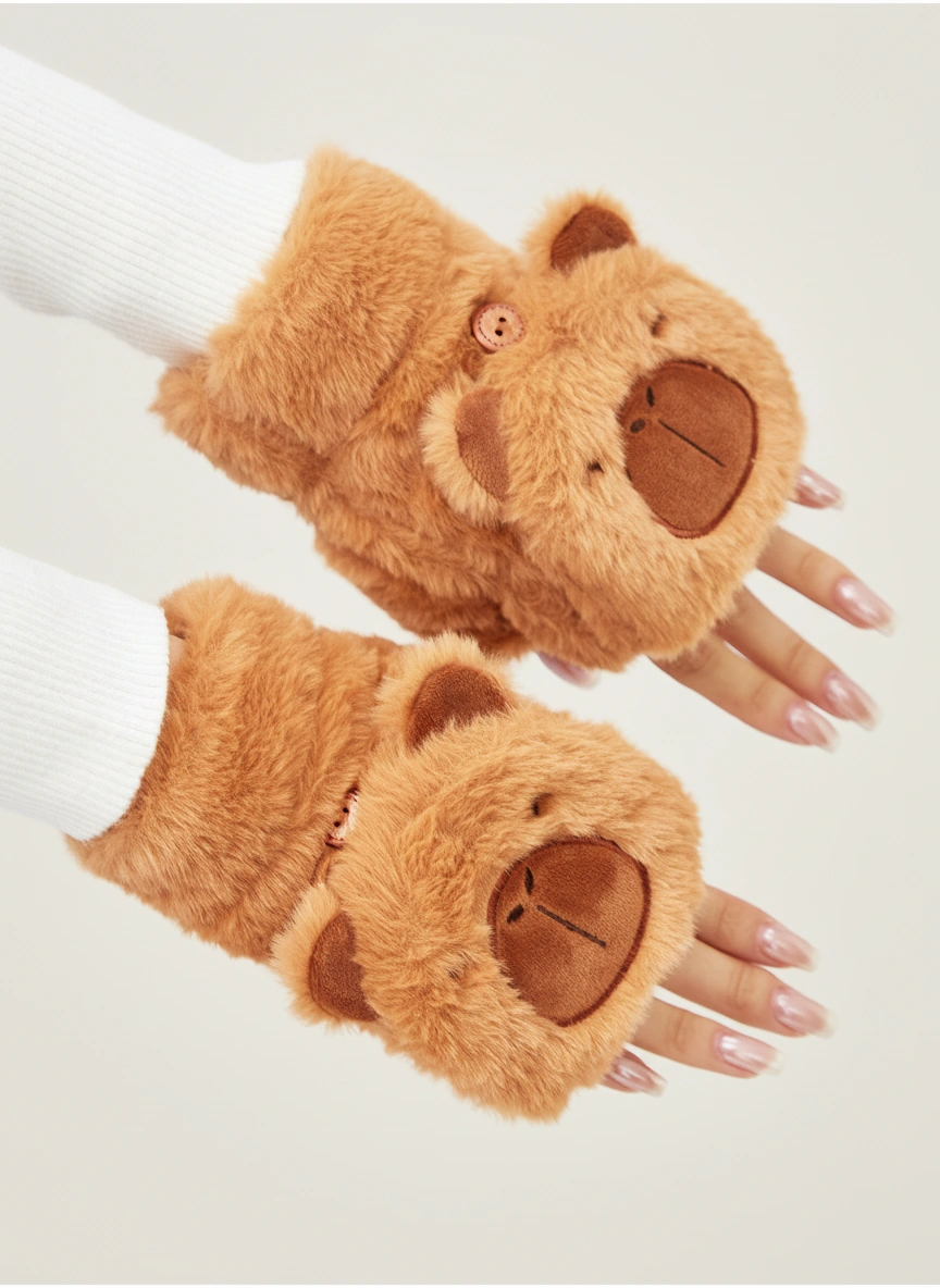 Soft Plush Convertible Capybara Mittens