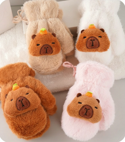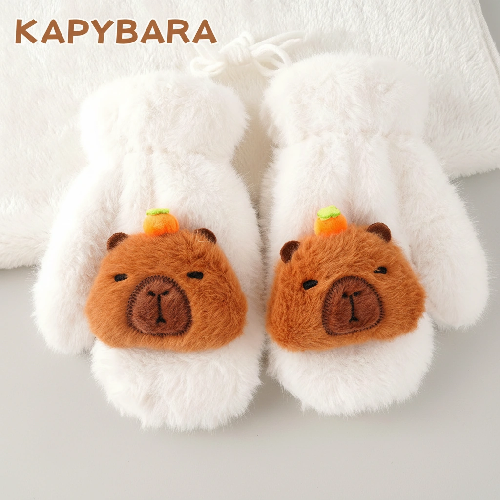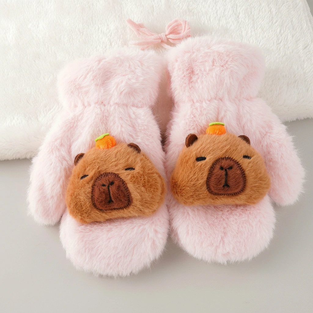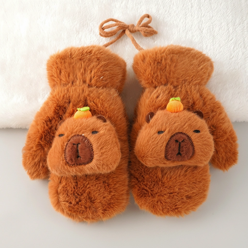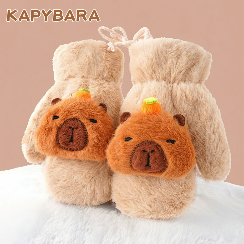Say Goodbye to Lost Gloves Winter adventures are more fun when you don’t have to worry about dropping a glove in the snow. These Kids Fluffy Capybara Mittens are designed with both cuteness and practicality in mind. Each pair comes connected by a convenient halter string, allowing children to hang them around their neck when not in use—perfect for active kids at school or the playground.