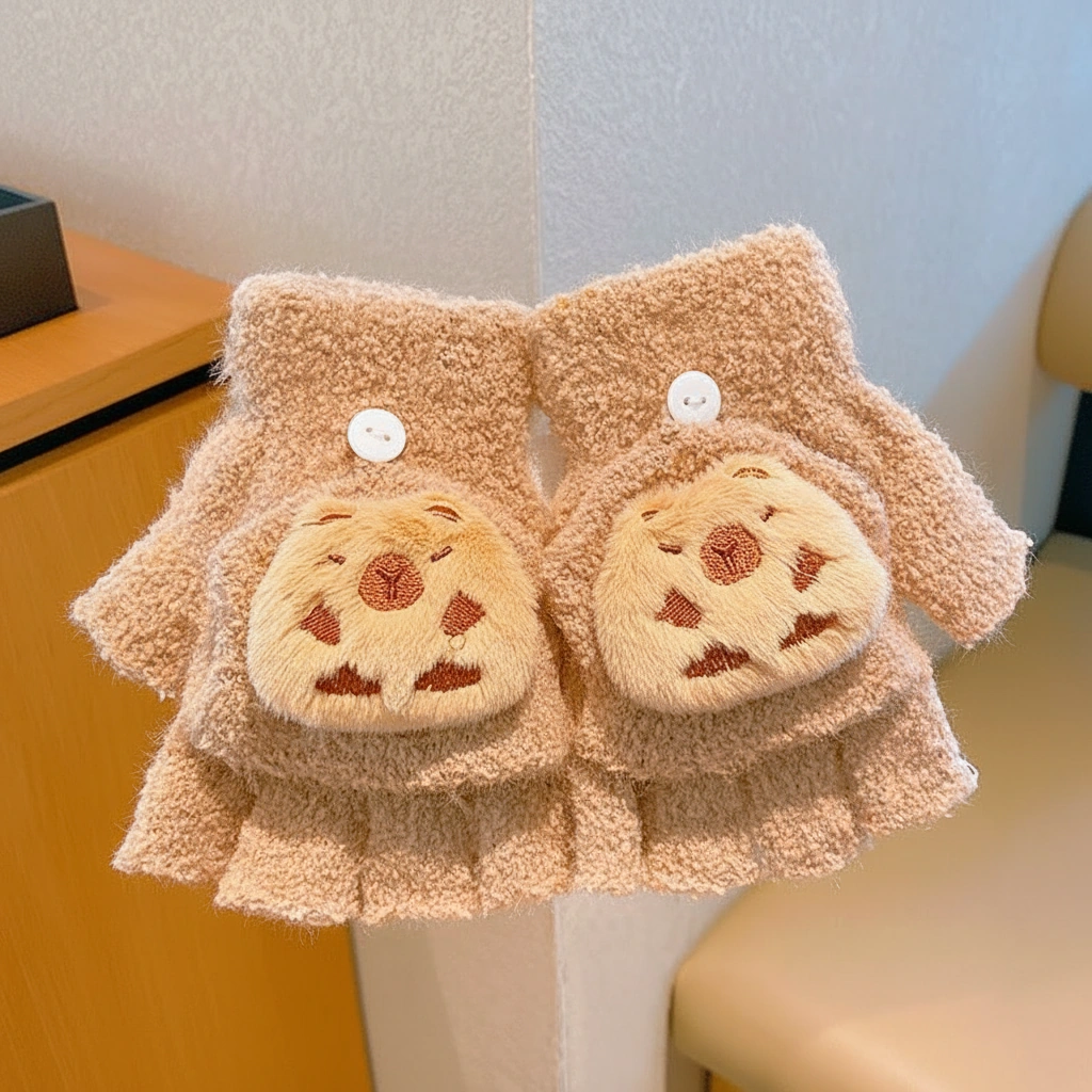 Kids Plush Capybara Gloves – Convertible Fingerless Mittens with Flip Top (2 Styles)