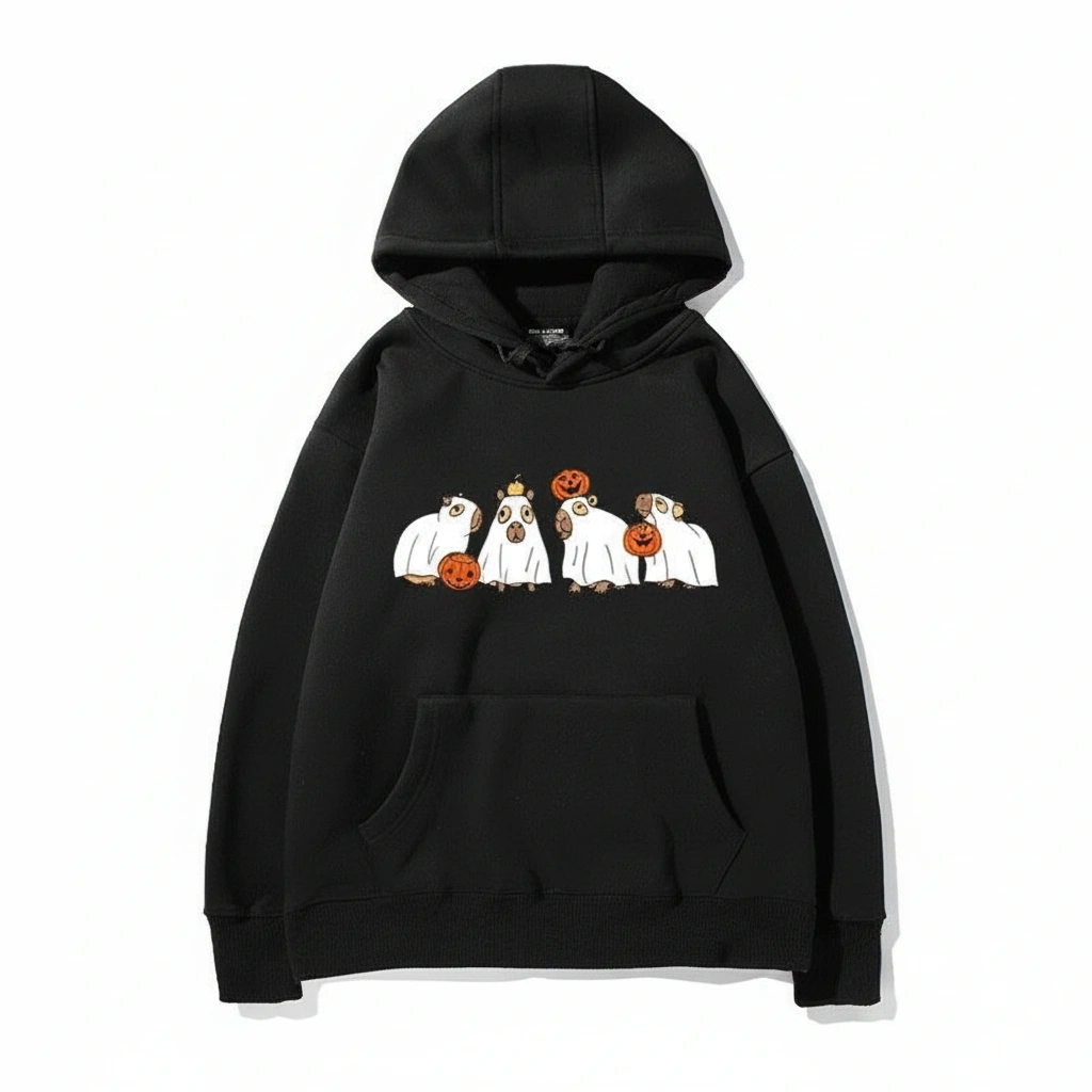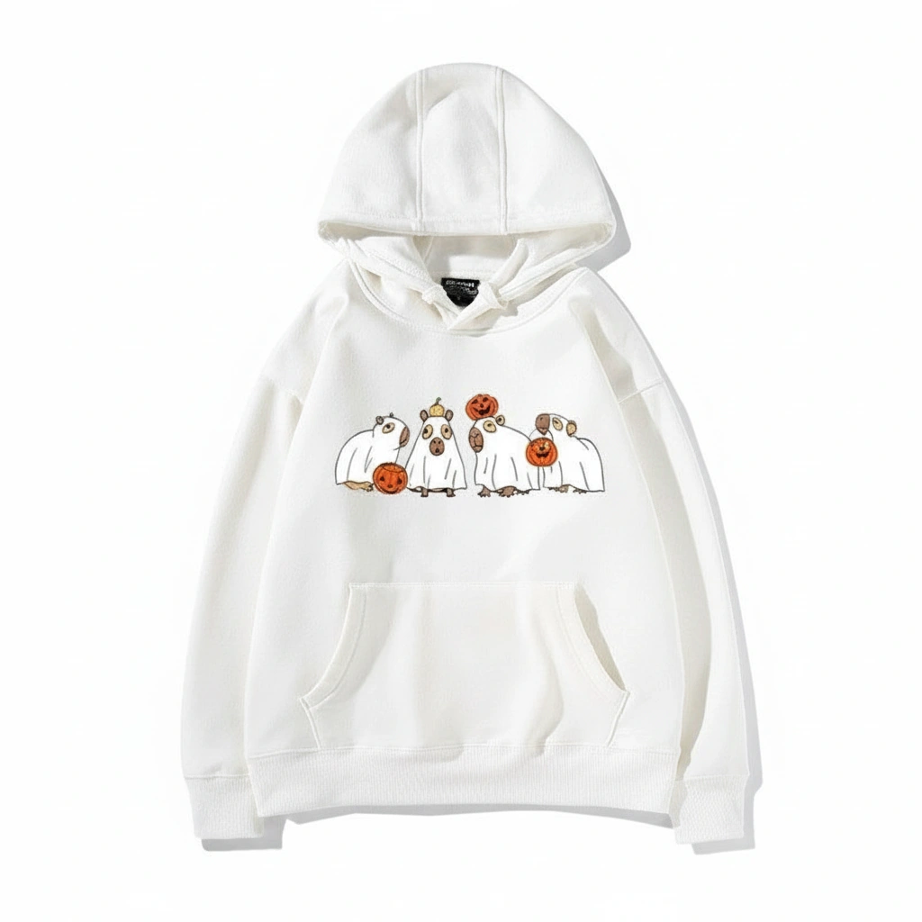 Who says Halloween has to be scary? It can just be chill. This ghost capybara sweatshirt is the ultimate costume for people who want to be festive but also extremely comfortable. Whether you are heading to a pumpkin patch, a party, or just watching scary movies at home, this hoodie ensures you do it in style.