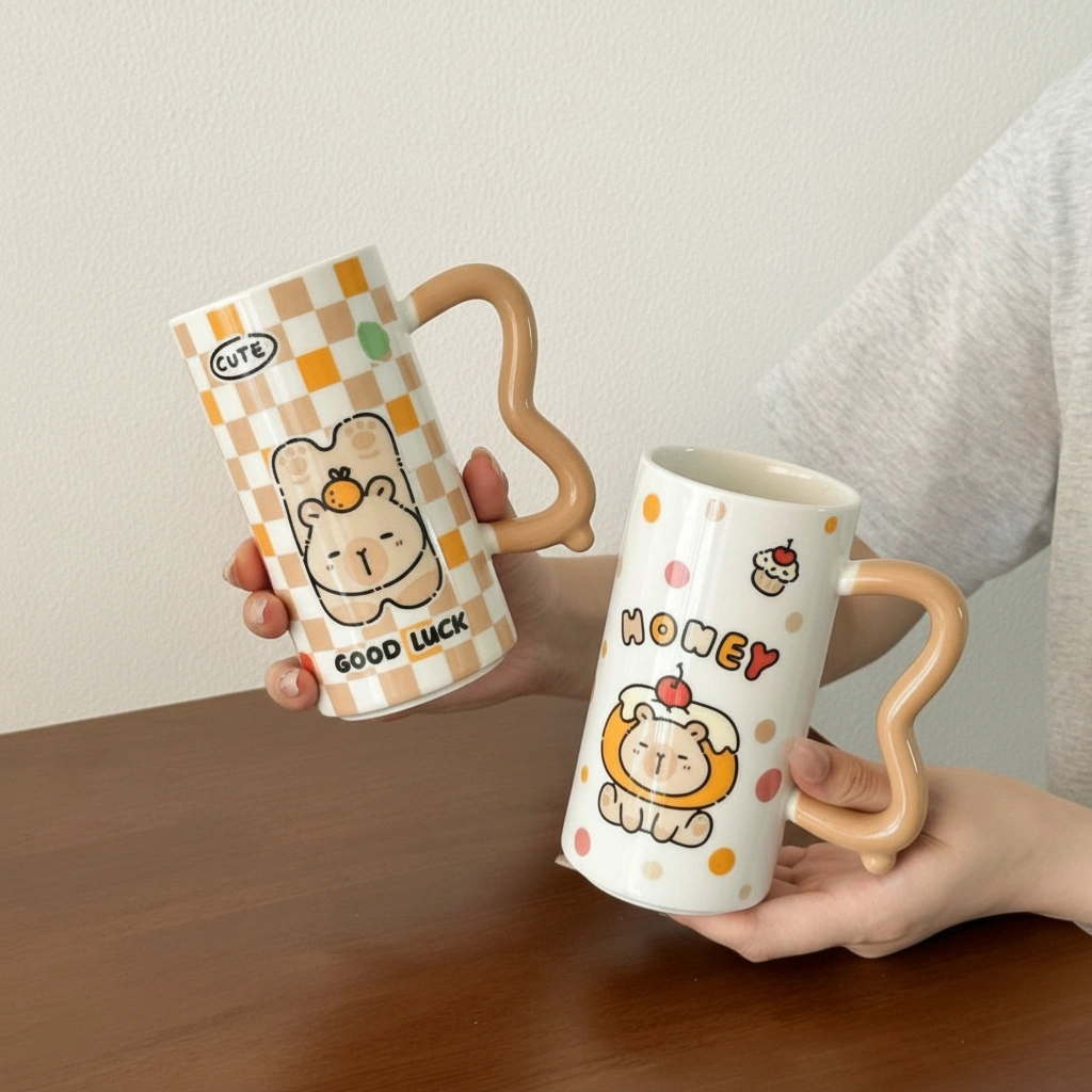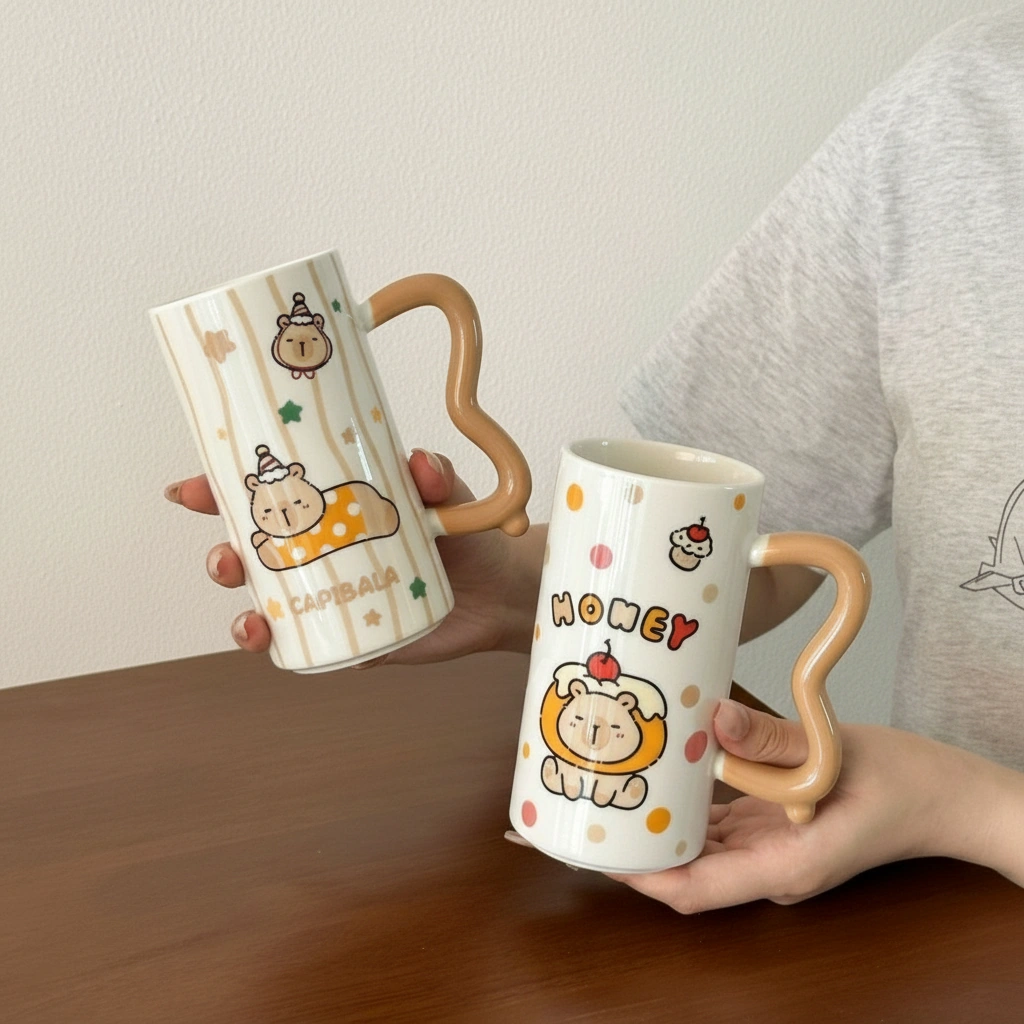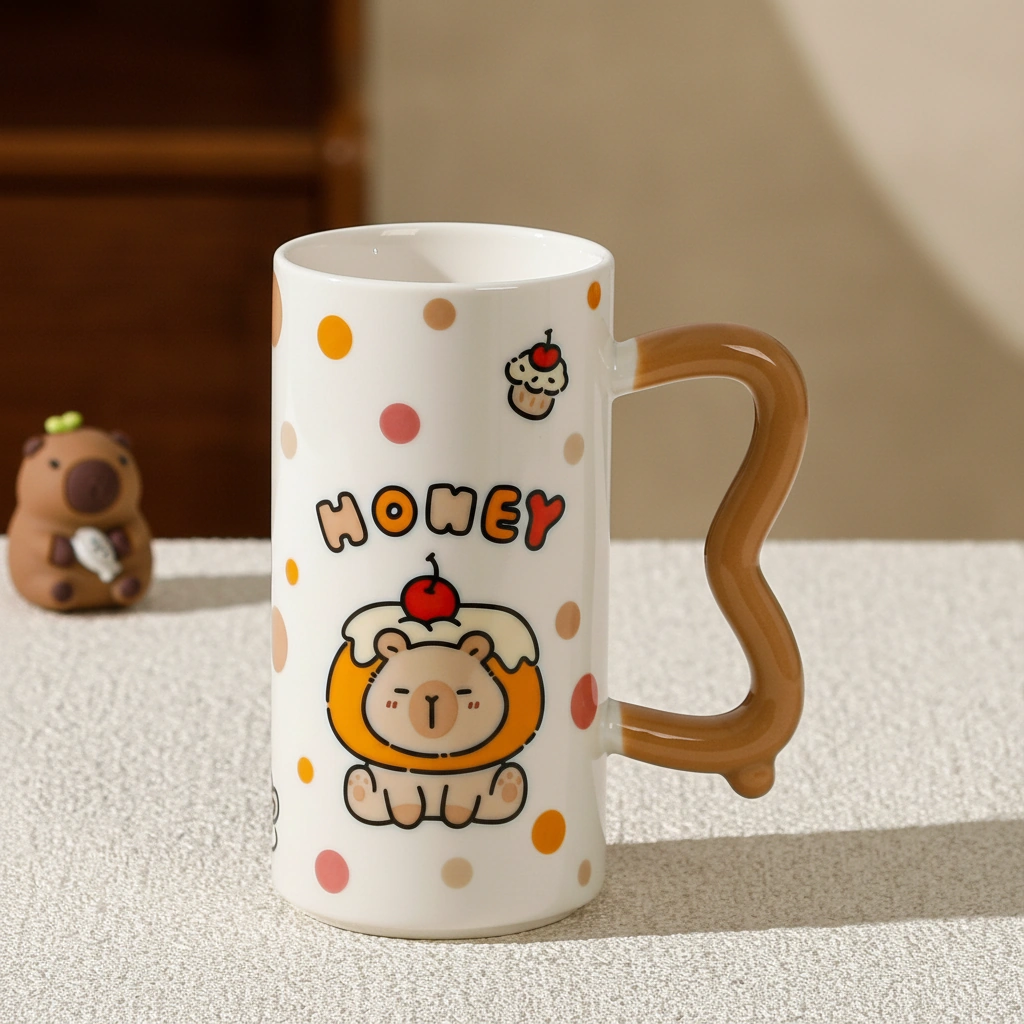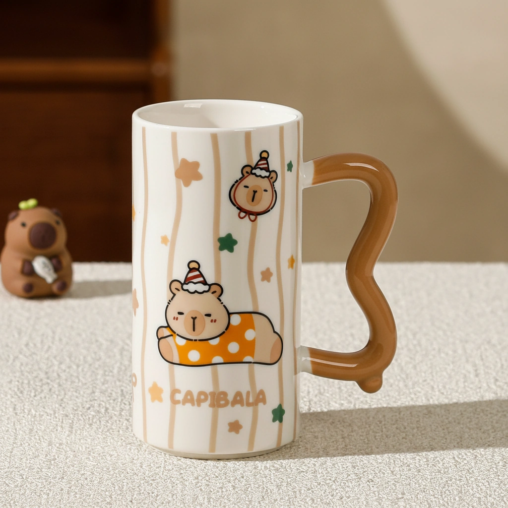 Every capybara coffee cup is made from premium, smooth-glazed ceramic that feels substantial in your hand. The most unique feature is the sculpted wavy handle, which offers a comfortable grip and a modern, artistic touch to the traditional coffee mug shape.