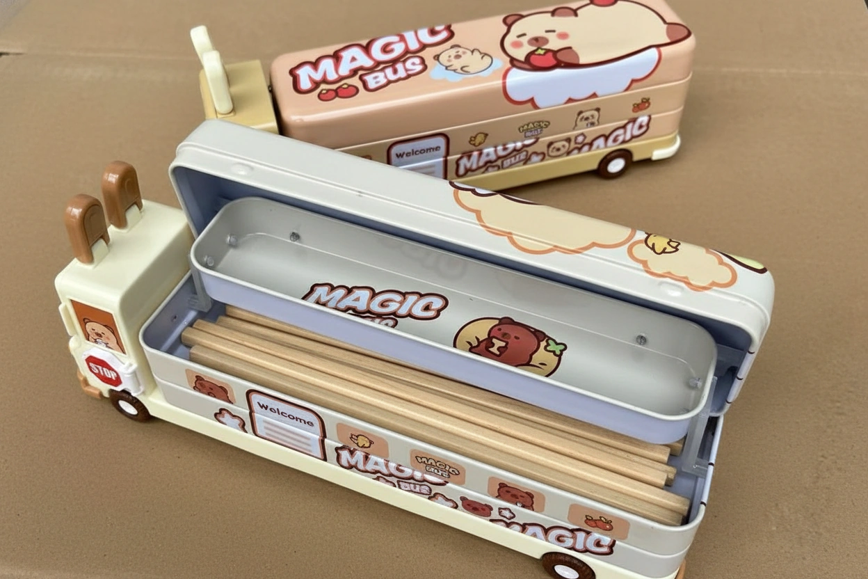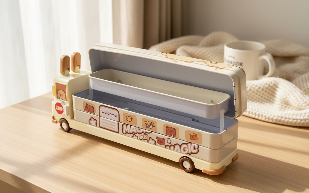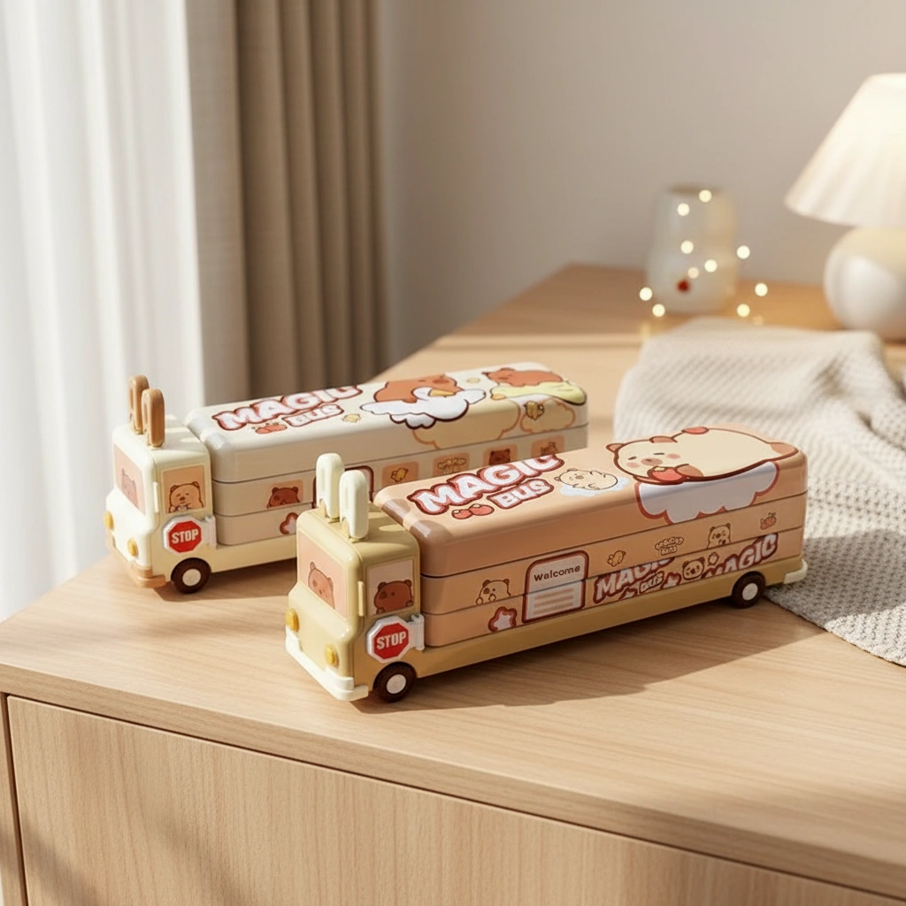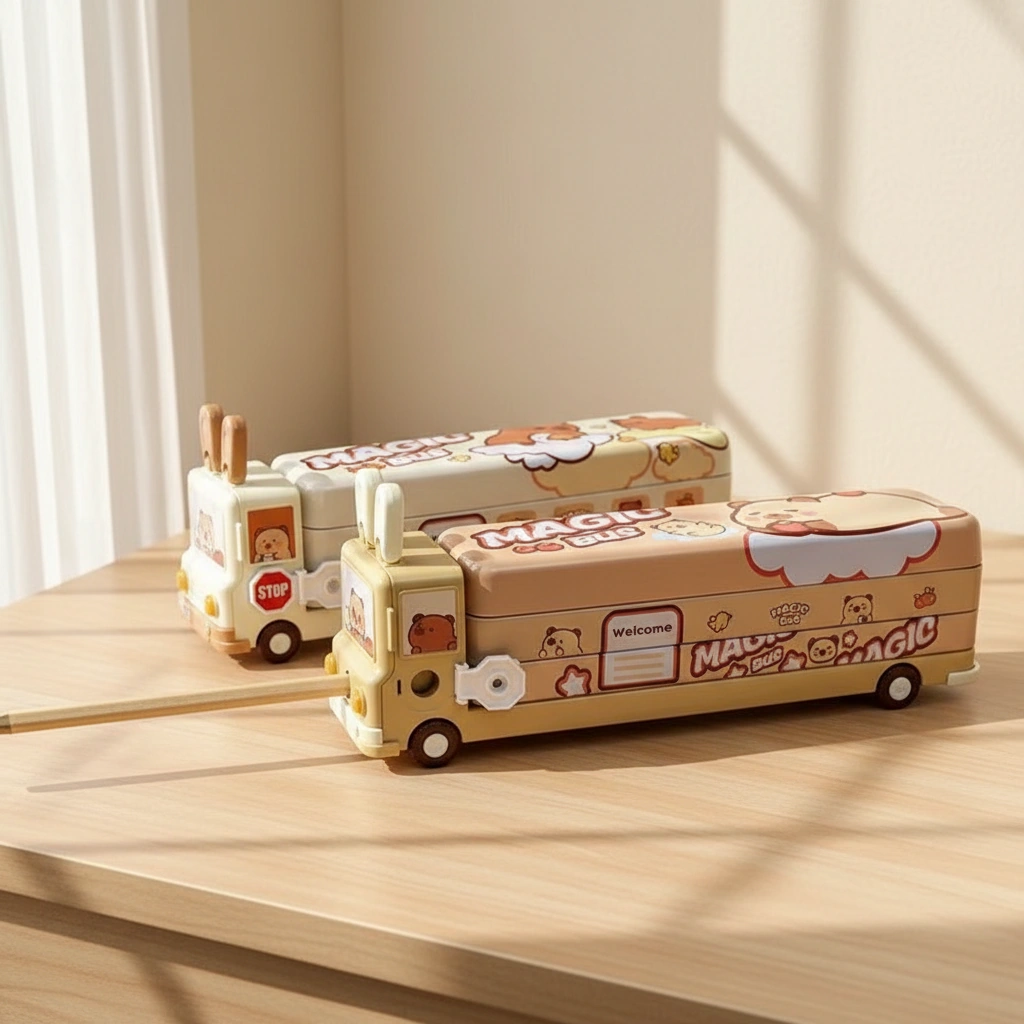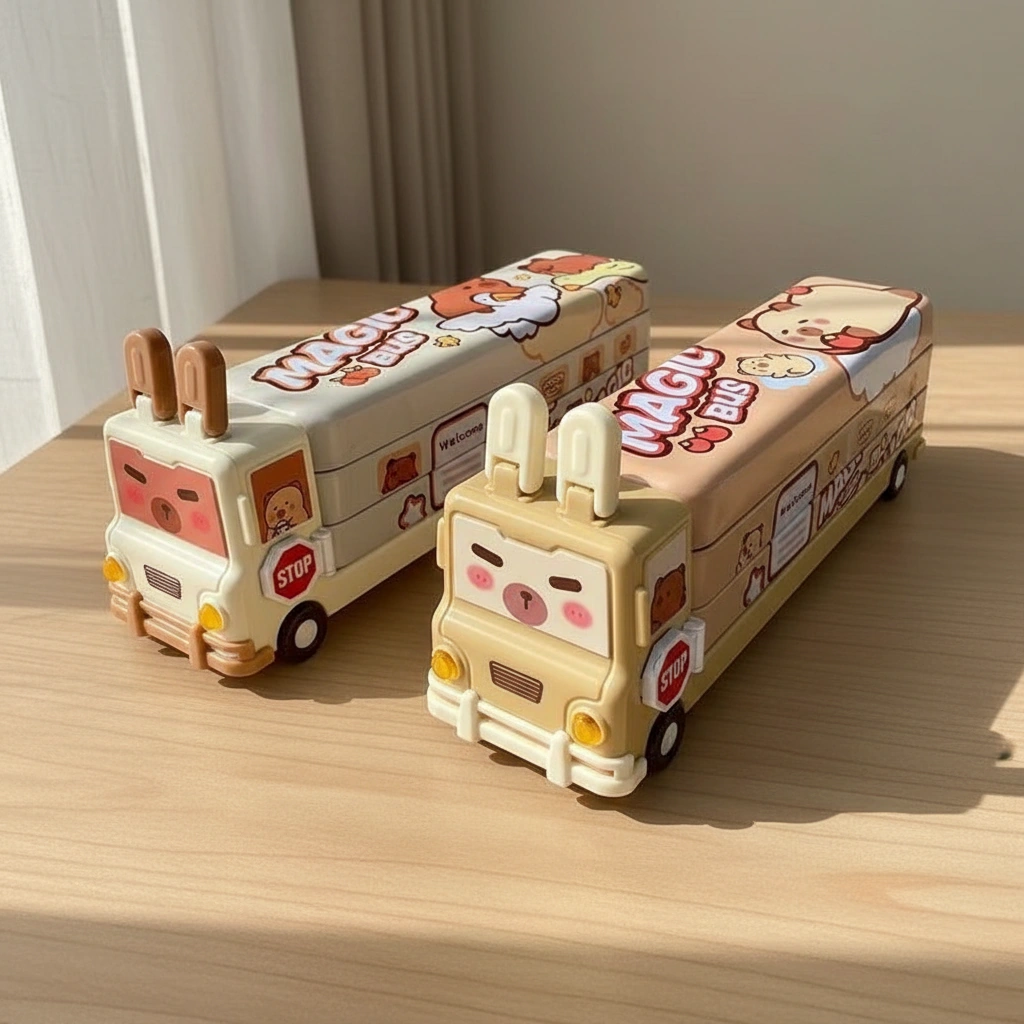 • Durable Alloy & PVC Build: Unlike soft pouches, this “Hard Shell” case provides crush-proof protection for your stationery. The main body is crafted from sturdy alloy/metal, while the detailed bus parts (wheels, front grill) are high-quality PVC.