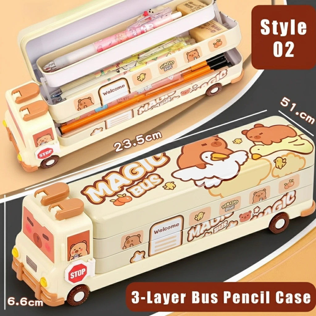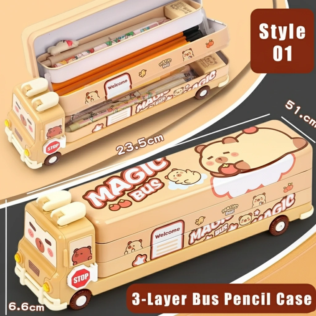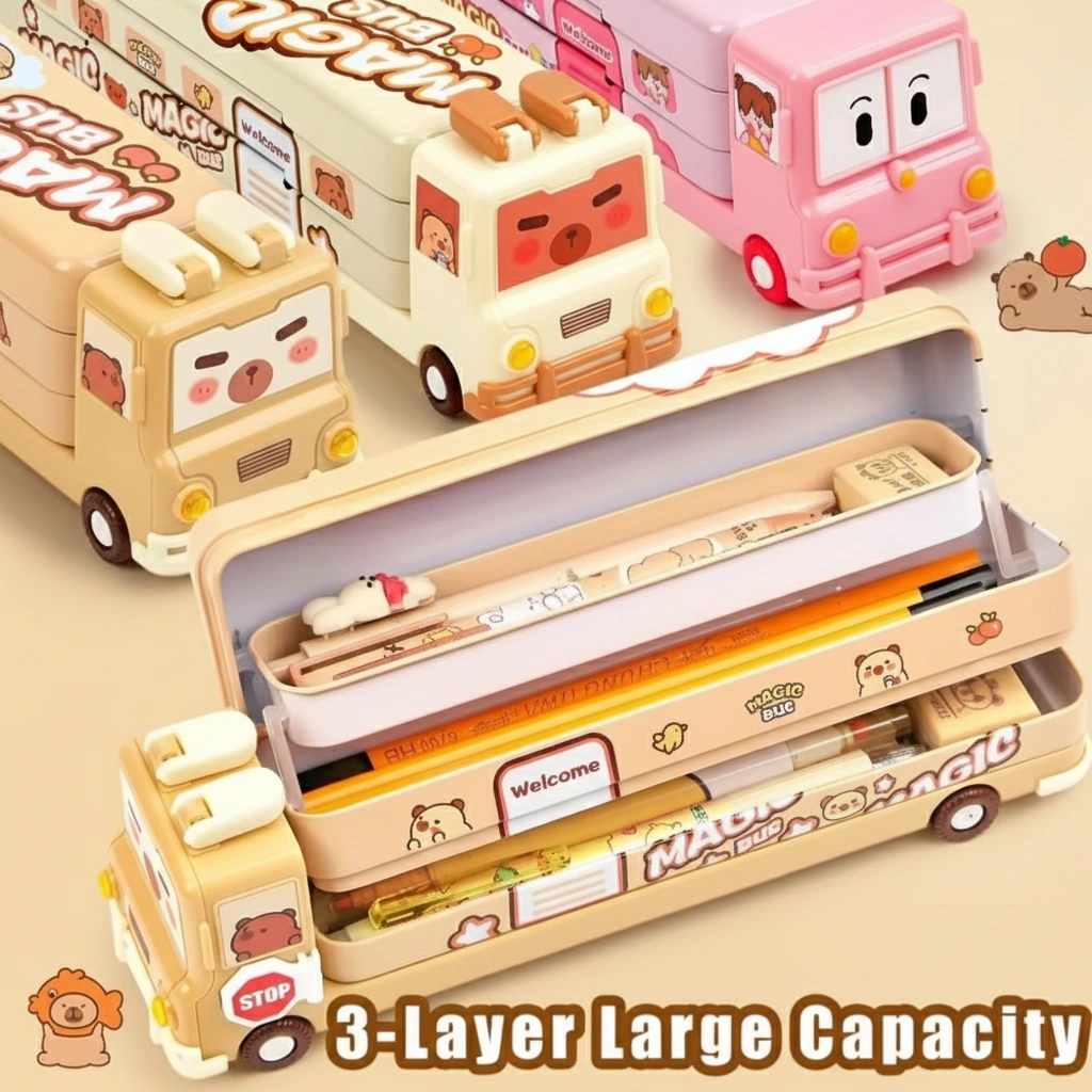 Capybara Bus Pencil Case (2 Styles) 3-Layer Stationery Box