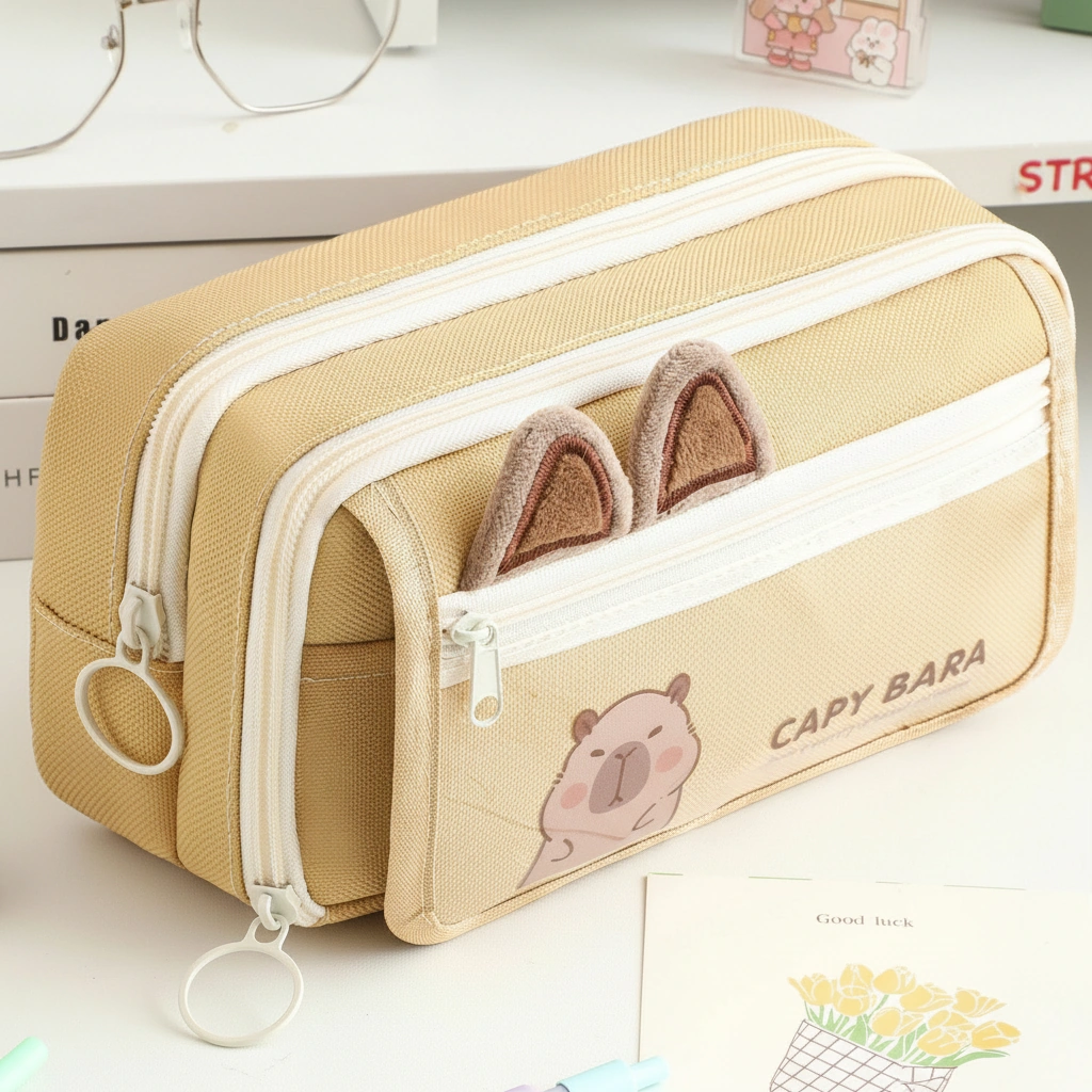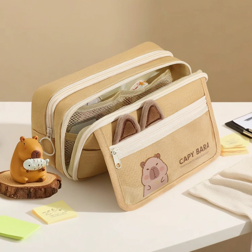 The “View Window” for your favorite stationery. Stop guessing where your favorite pen is. This Capybara Multi-Layer Pencil Case combines massive storage with a trendy transparent front pocket, giving you a clear view of your essentials while keeping the “chill” capybara vibes high.