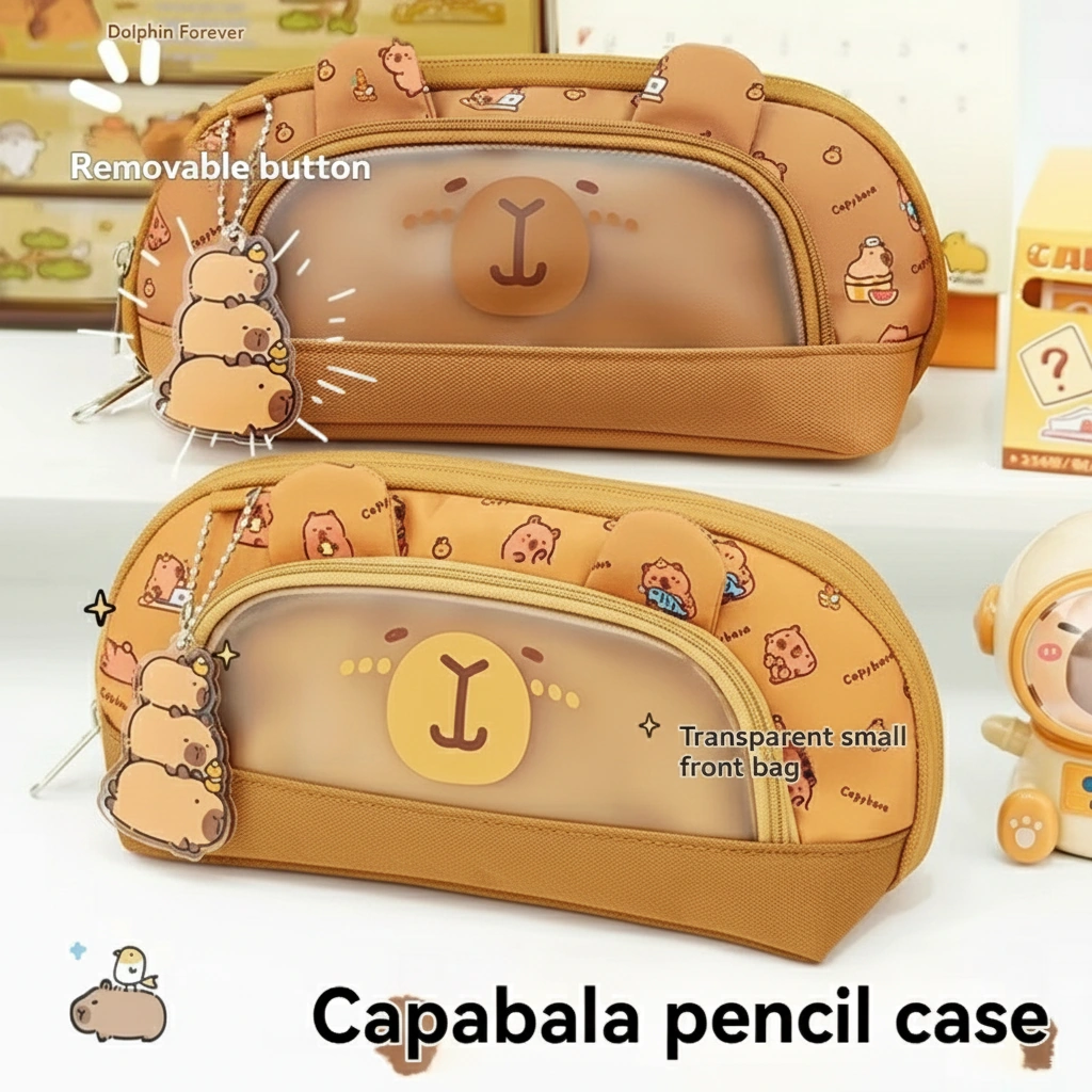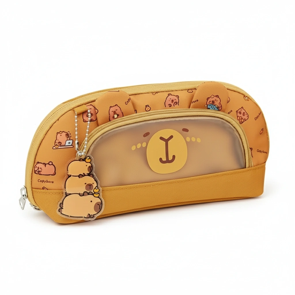 A Room with a View: The Capybara Display Pouch Say goodbye to digging blindly for your favorite pen. This Capybara Canvas Pencil Pouch combines massive storage with a trendy transparent design. It’s not just a pencil case; it’s a display case for your cutest stationery! With soft fabric and adorable 3D ears, it brings a cozy, aesthetic vibe to any desk.