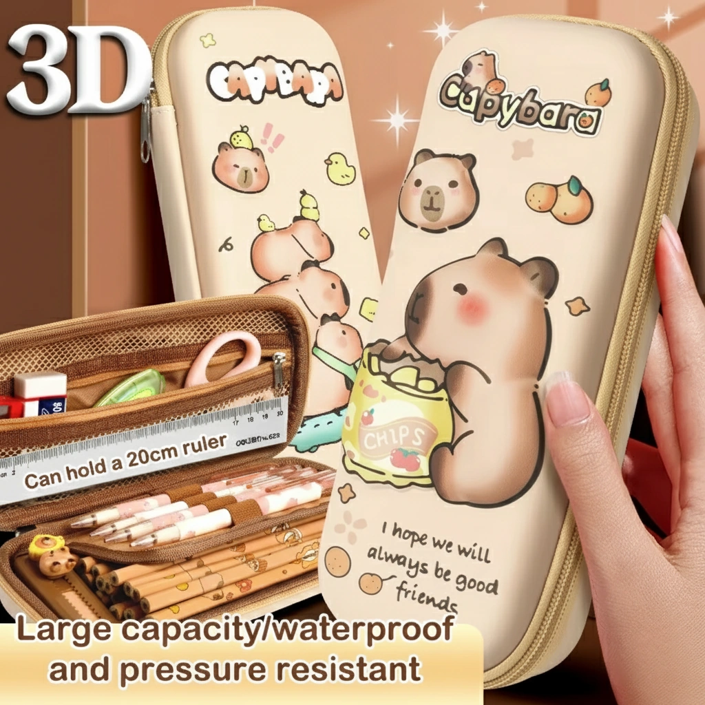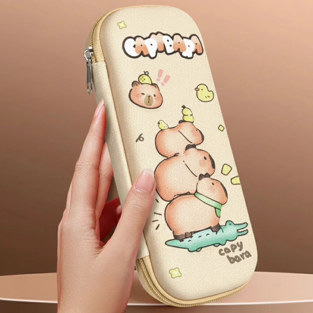 Designed with a rounded, comfortable shape, it offers superior protection for your favorite pens while showcasing the cutest Capybara moments. Whether you spill your coffee or drop it on the floor, your stationery stays safe and dry.