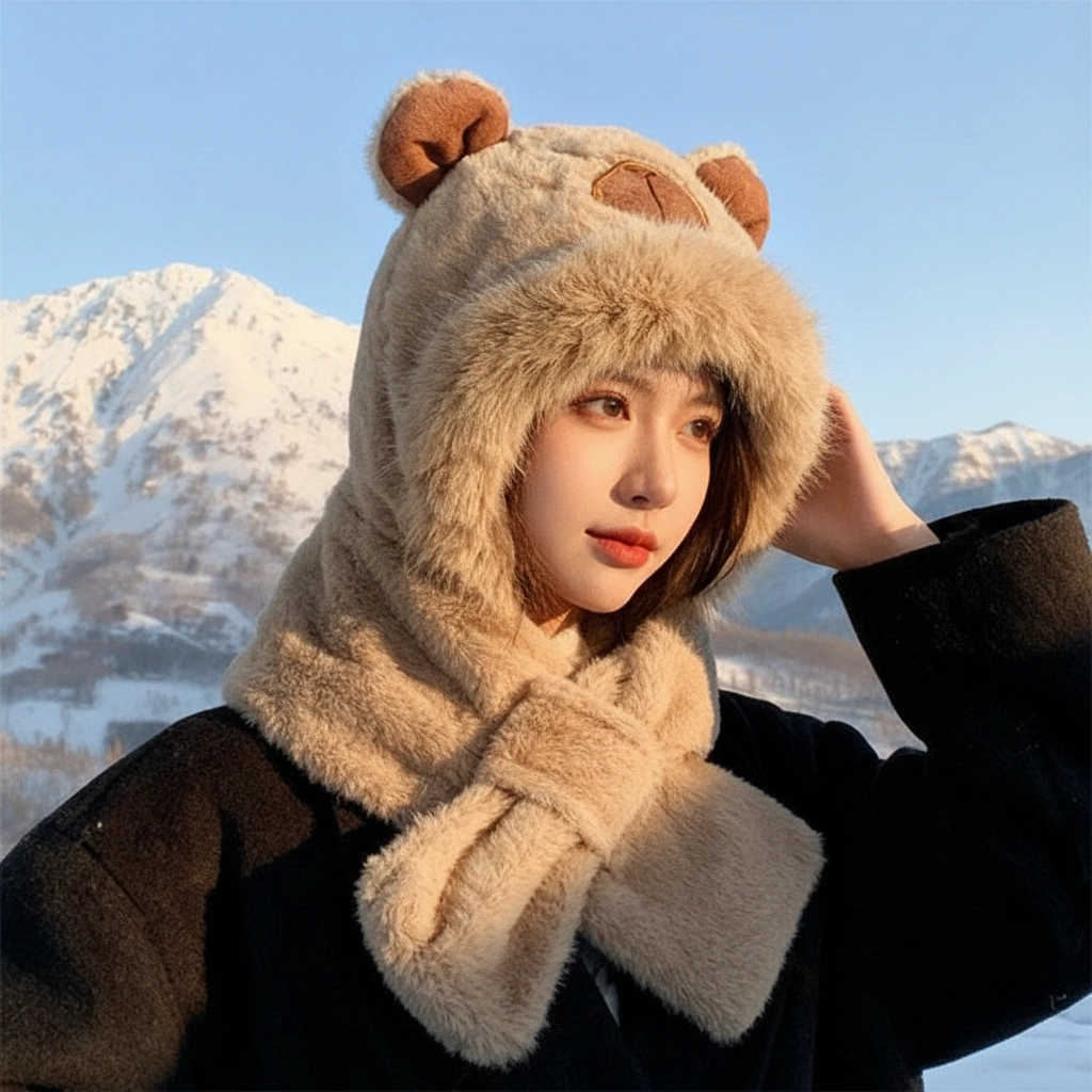 - Luxury Fur Trim: Unlike our standard plush hats, this model features a dense, long-pile faux fur trim around the face opening. It blocks wind effectively and gives you that “snow bunny” aesthetic.