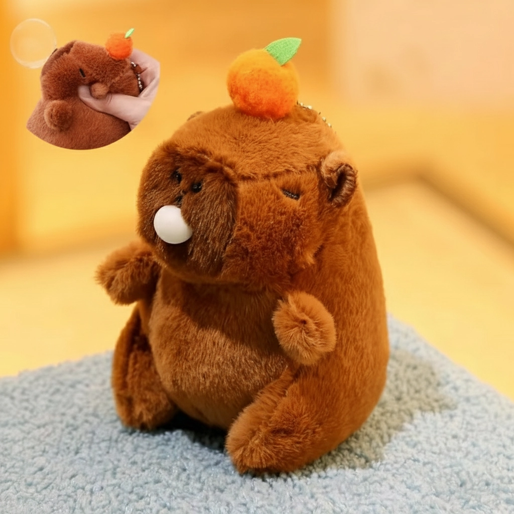 Capybara Plush Keychain – 3 Colors, Shake for Sound & Bubble Blowing – 12cm Soft Bag Pendant