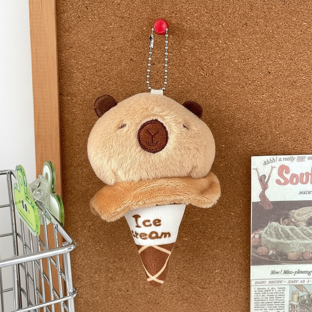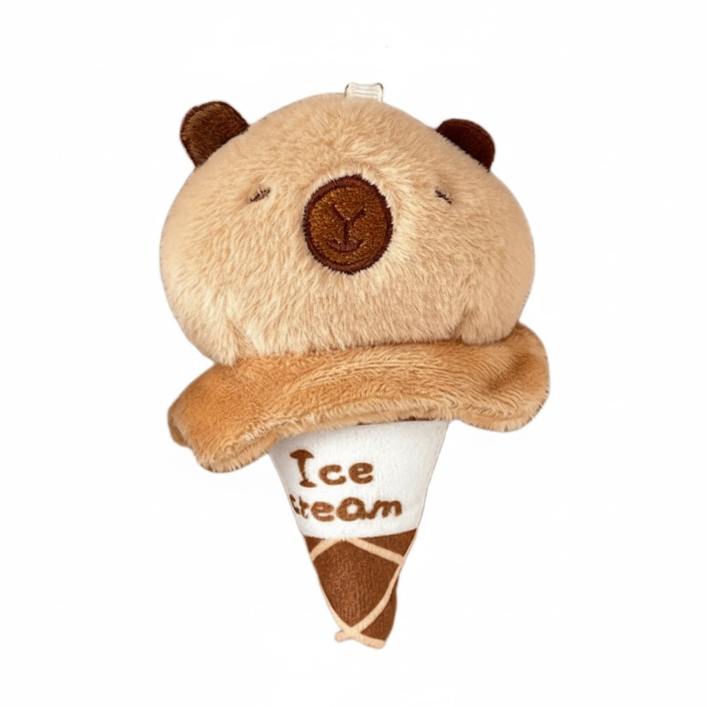Capybara Ice Cream Plush Keychain – Waffle Cone Design – 11cm Dessert Bag Pendant