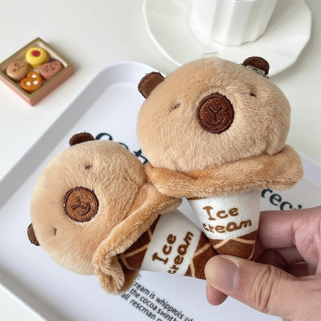 A Sweet Treat for Your Bag Add a touch of sweetness to your daily carry with the Capybara Ice Cream Cone Plush. This creative design merges the relaxed vibe of a capybara with the fun of a summer dessert. It serves as a lighthearted accessory for backpacks, totes, or car keys, offering a unique look for fans of food-themed plushies.