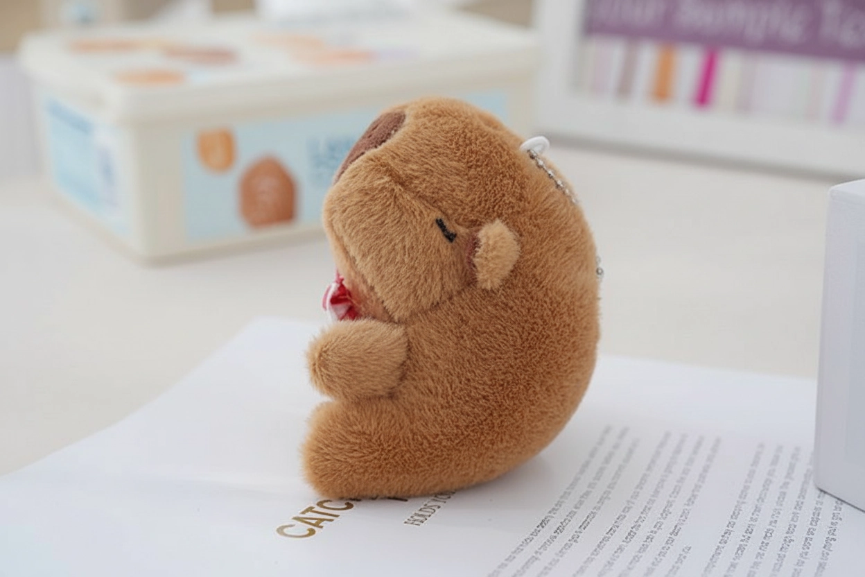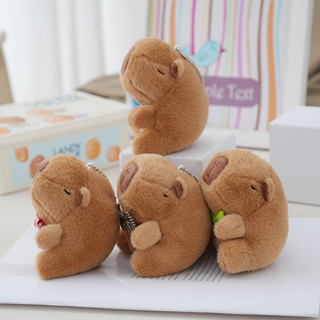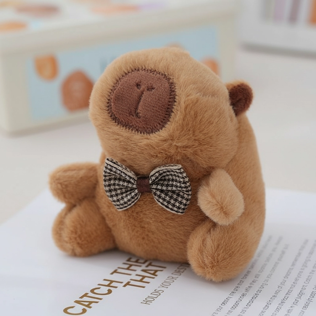 The Most Polite Plushie You’ll Meet Meet the gentleman of the capybara world. This plush keychain moves away from wacky costumes and embraces a classic, clean look. Sitting obediently with a sweet expression, this little capybara is dressed to impress with a smart bow tie. It’s the ideal accessory for those who appreciate a more understated, charming aesthetic.