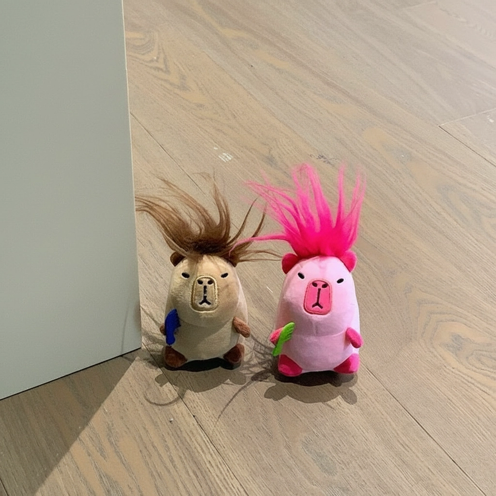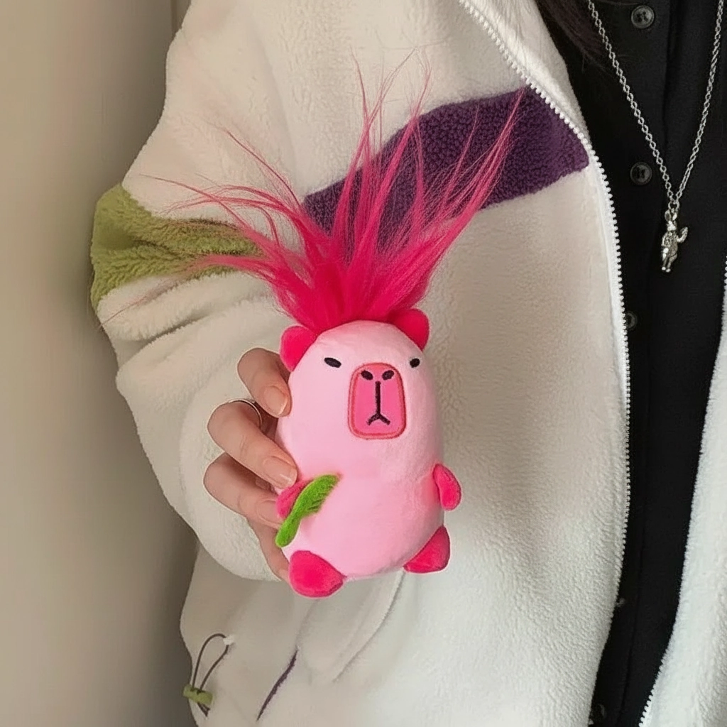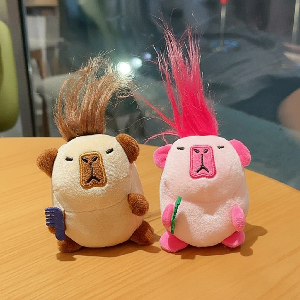 The Ultimate “Bad Hair Day” Buddy Bring a dose of chaotic fun to your daily routine with this hilarious Wild Hair Capybara Plush. Channeling the nostalgic vibe of retro troll dolls, this keychain features an explosion of long, synthetic hair sprouting from the capybara’s head. It is quirky, funny, and impossible to ignore.