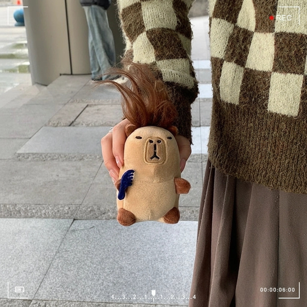 DIY Styling Experience This isn’t just a keychain; it’s a mini salon in your pocket. Each capybara comes holding a small felt “comb” prop, inviting you to tame its mane. You can brush the hair up for a punk-rock spike look, braid it for a neat style, or mess it up for maximum fluffiness. It offers endless fidgeting fun for restless hands.
