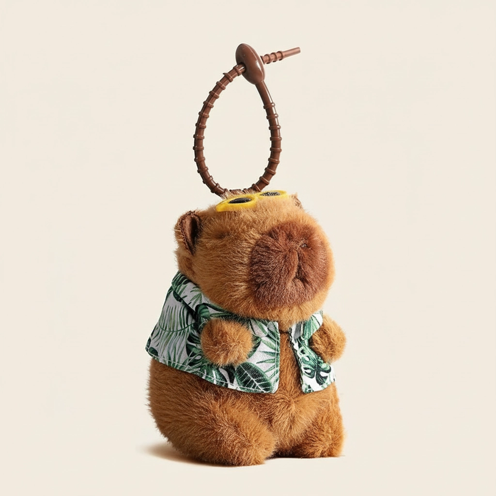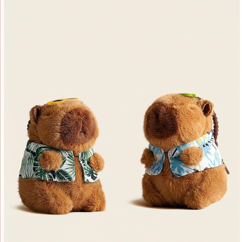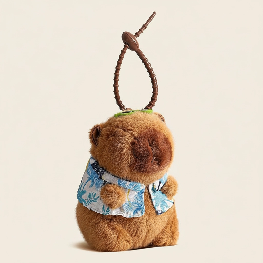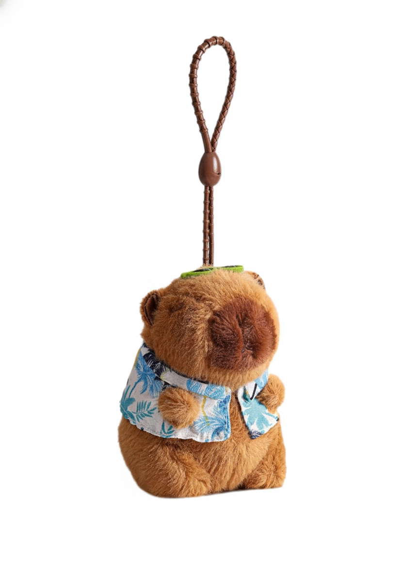 Vacation Mode: On Get ready for sunny days with the coolest rodent around. This Summer Edition Capybara captures the essence of a relaxing beach holiday. Unlike our other cozy winter styles, this plushie is dressed to impress for the heat, sporting a stylish, open-collar resort shirt. It is the ideal accessory to remind you of your next getaway or to add a splash of summer fun to your bag.