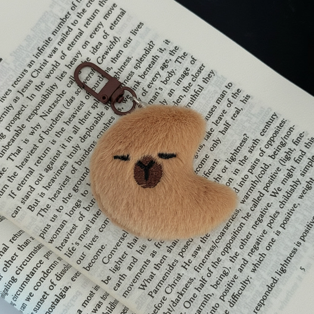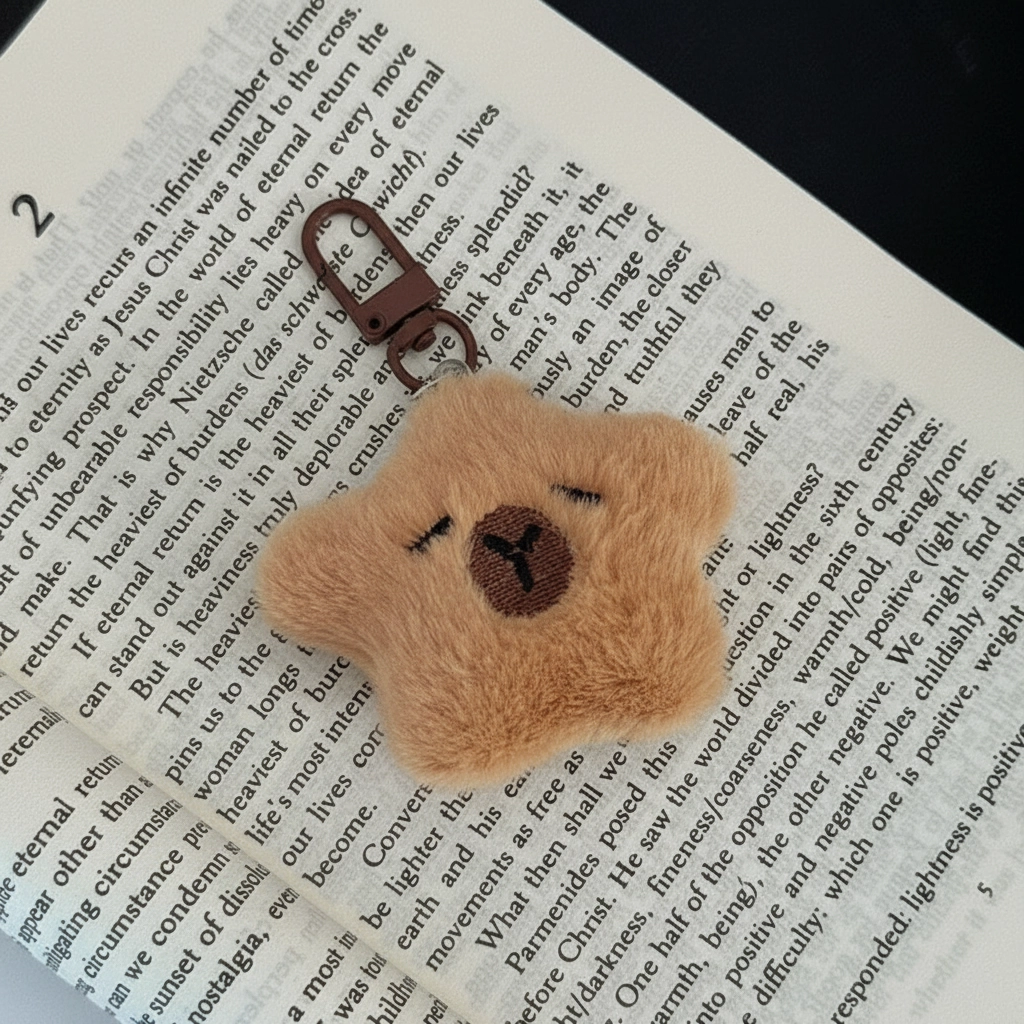 Lightweight & Quiet Hardware To maintain the soft, gentle theme, these keychains are equipped with a high-quality chocolate-brown plastic clasp. This hardware is lightweight, durable, and doesn’t make the jingling noise of metal keys, keeping your “sleeping” capybara undisturbed.