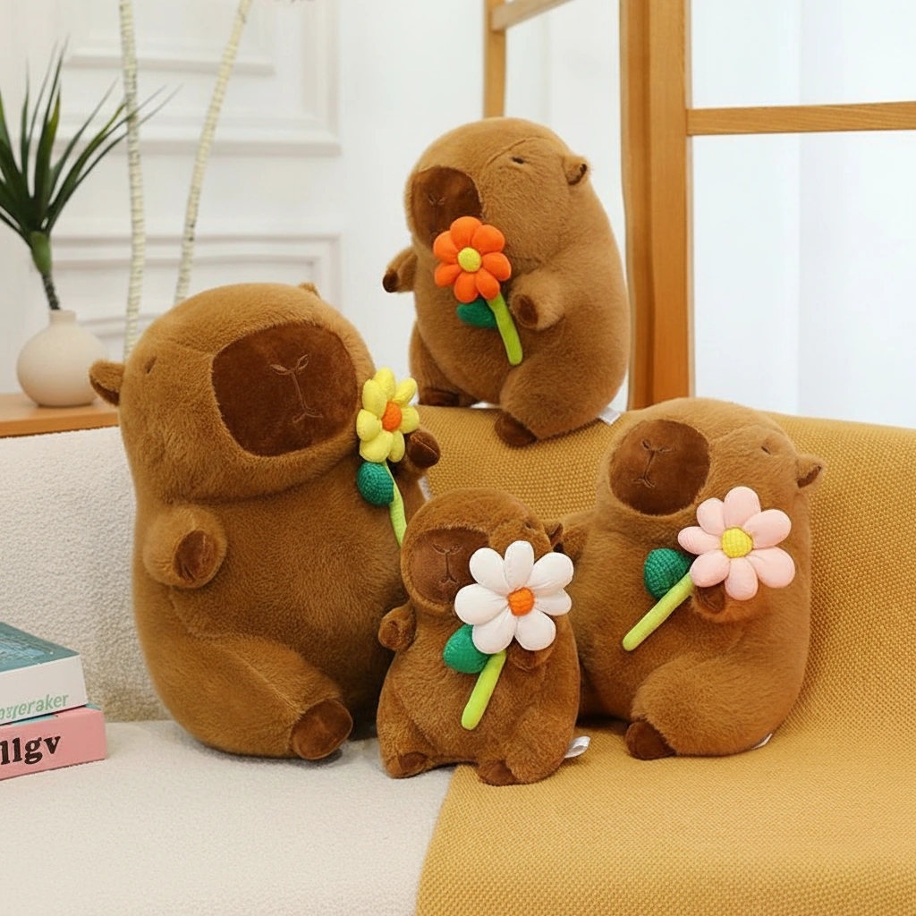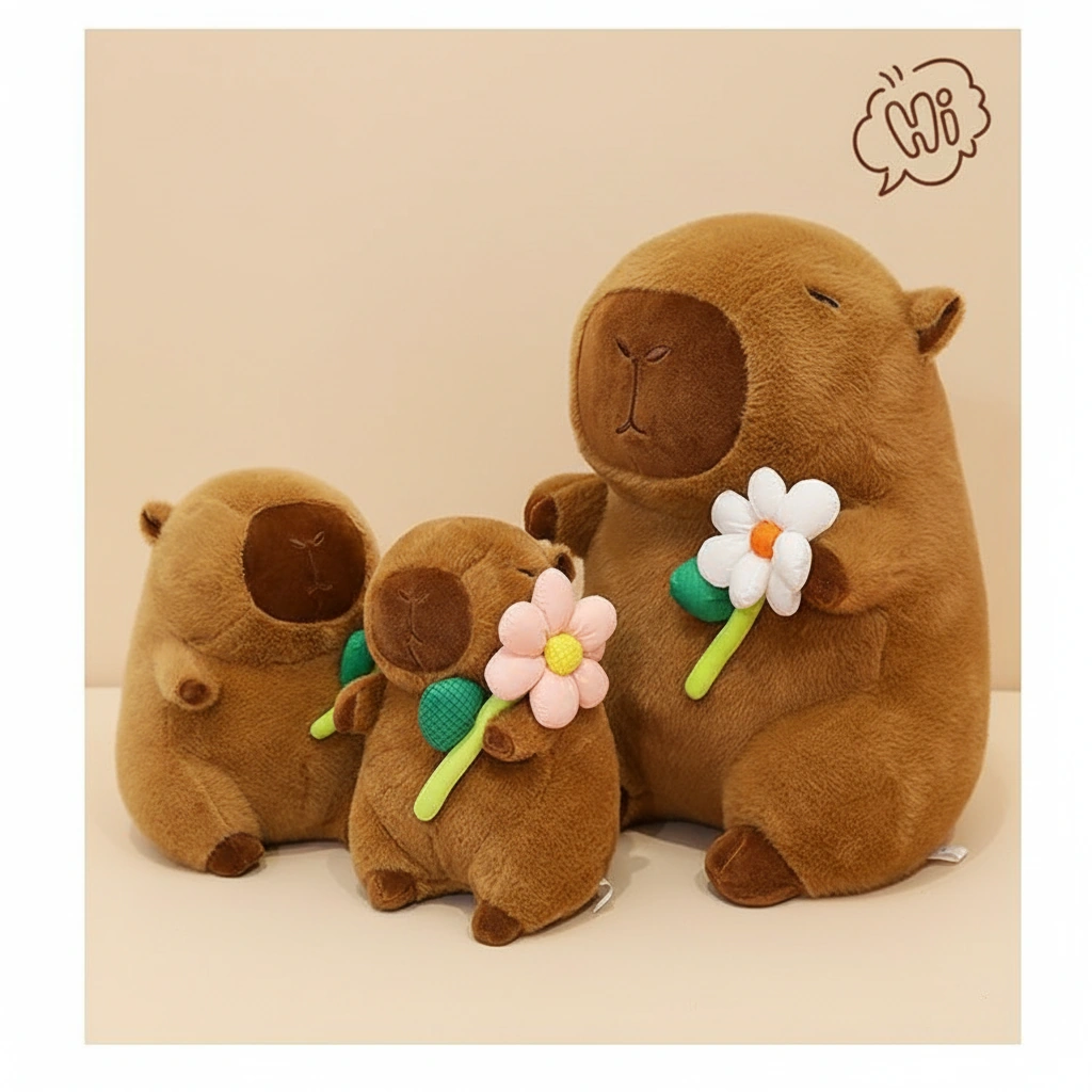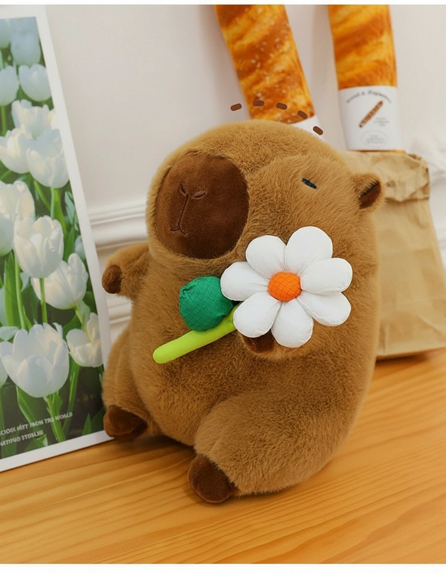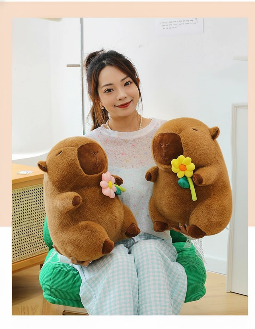 Bring Home the Ultimate Chill Vibes Looking for a companion that radiates peace and tranquility? Meet our adorable Capybara Plush collection! These little guys are the definition of “unbothered.” With their eyes gently closed and a sweet flower held tightly in their paws, they are here to remind you to slow down, take a breath, and relax. Whether you need a desk buddy or a cuddle partner, this stuffed capybara is ready to brighten your day.