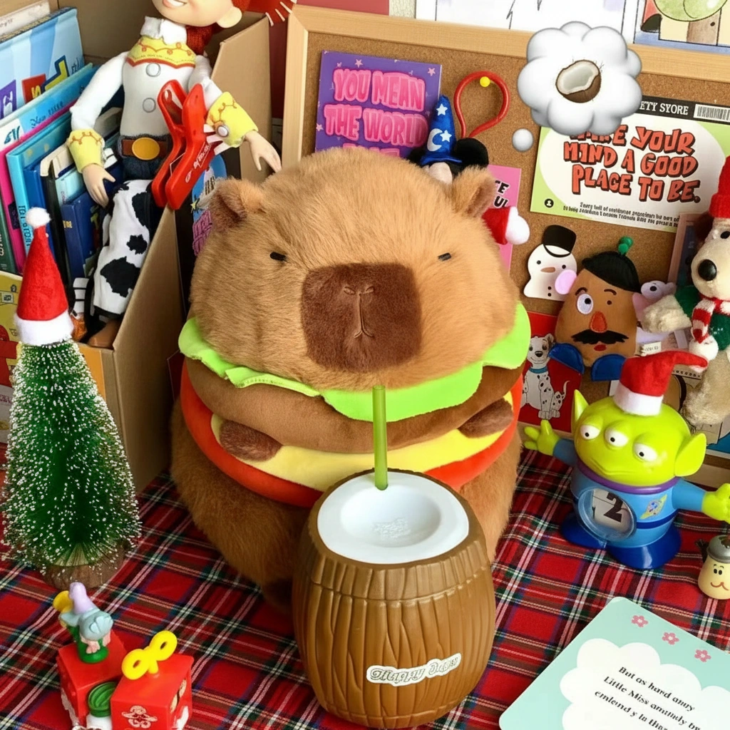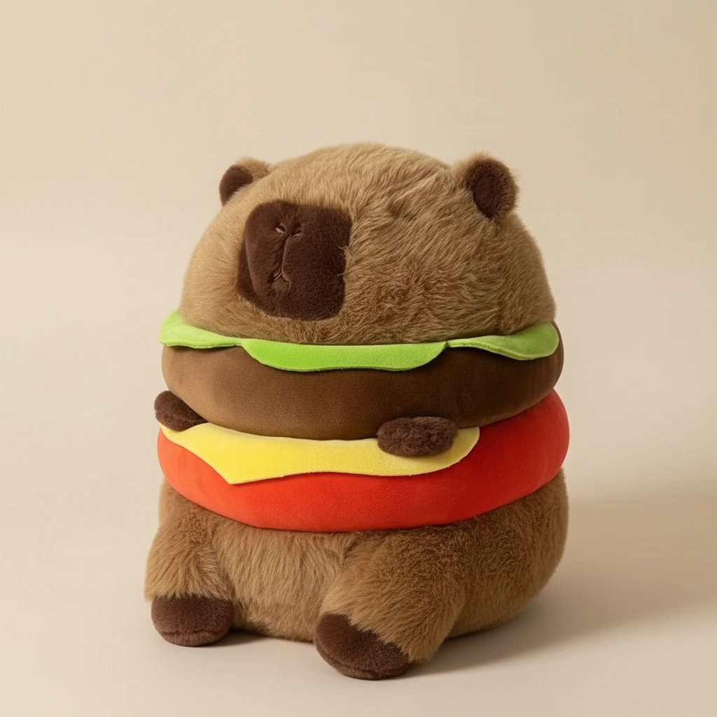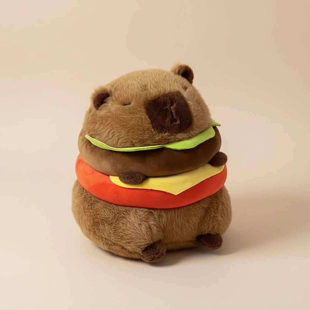 Hungry for a cuddle buddy that’s totally unique? Meet the “Capy-Burger”—the most delicious-looking fluffball on the menu! This isn’t just a plushie; it’s a hilarious and adorable fusion of the world’s chillest animal and everyone’s favorite comfort food. Whether you need a nap companion or a quirky decor piece to spice up your room, this capybara plush delivers the flavor.