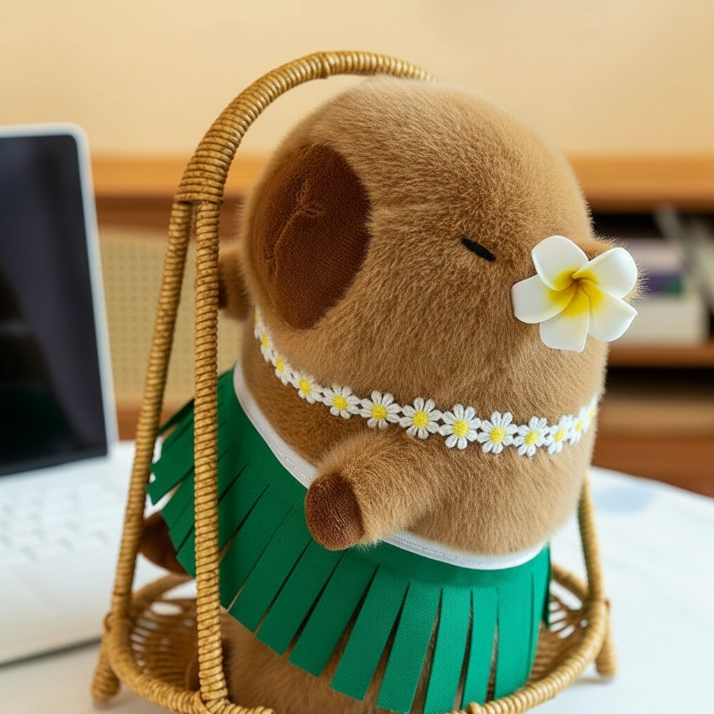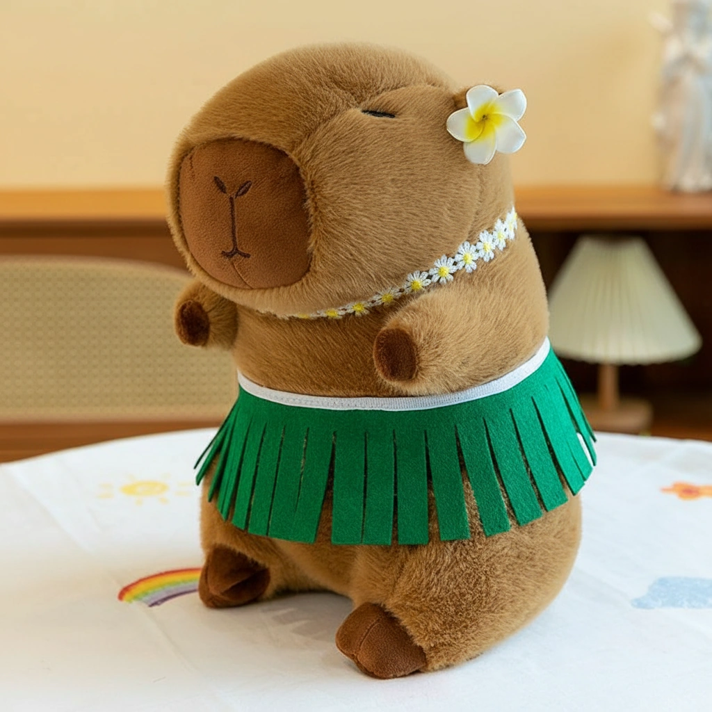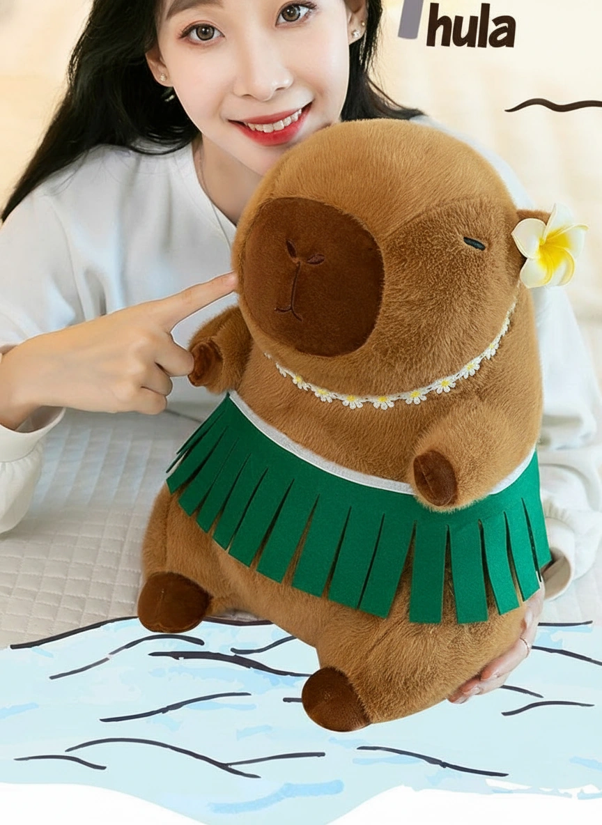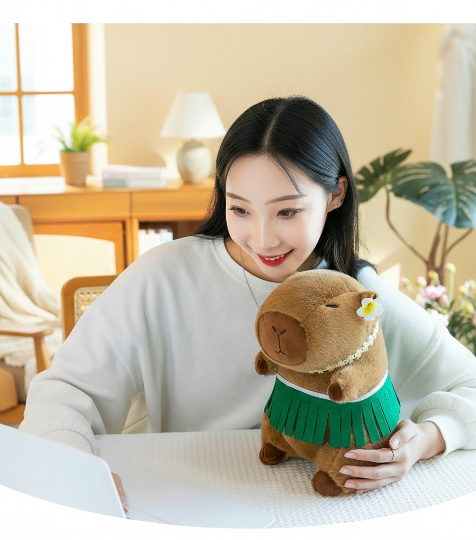 Ready for a permanent vacation? Meet the Hula Dancer Capybara Plush, your new best friend for relaxation. Whether you are dreaming of a beach getaway or just need a comforting hug after a long day, this tropical cappy is here to bring the sunshine. With its eyes closed in pure bliss and a festive outfit, it captures the ultimate “unbothered” energy capybaras are famous for.