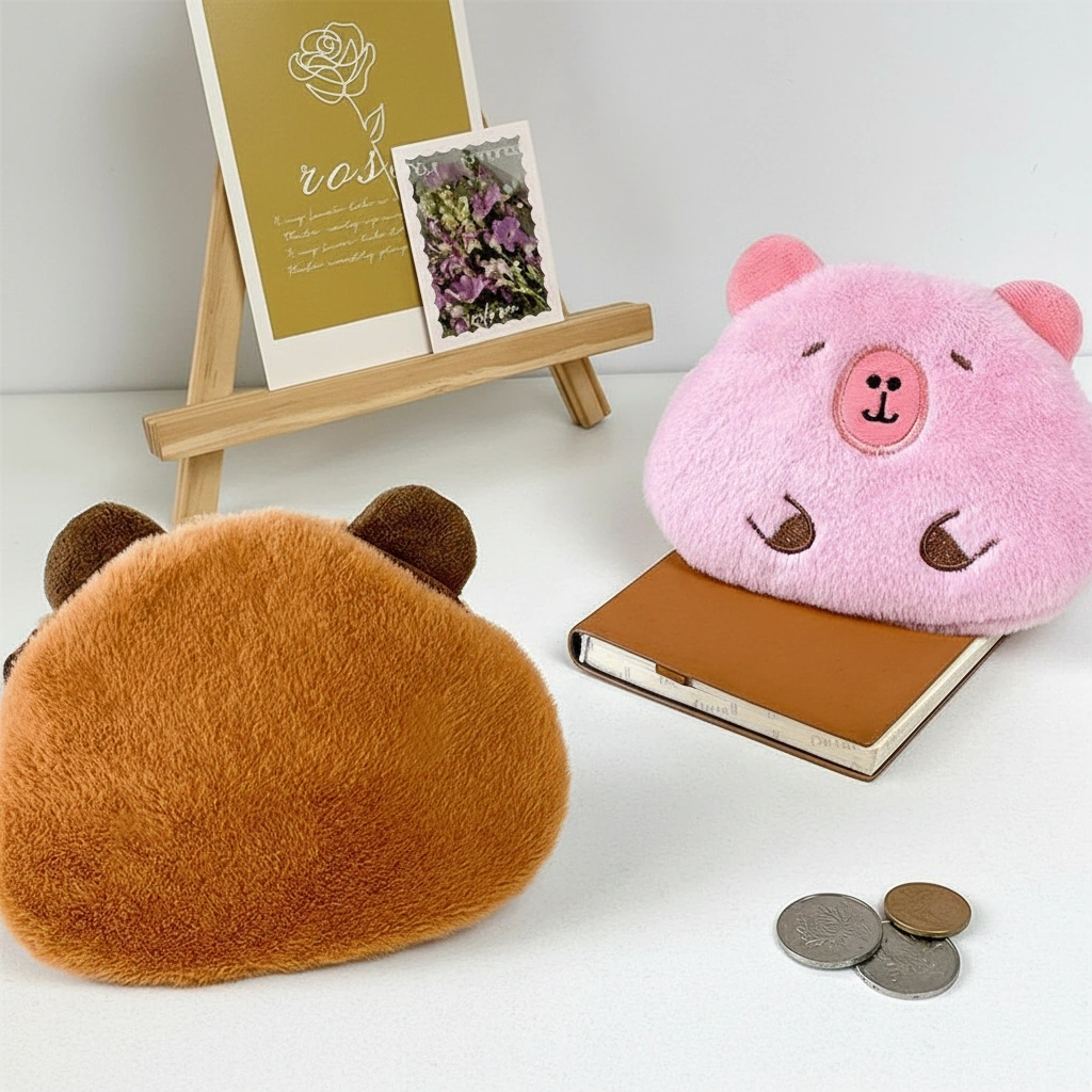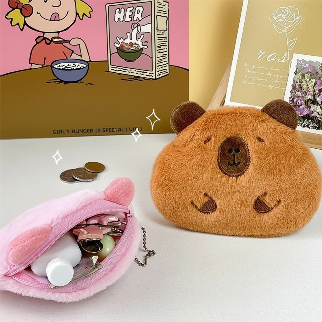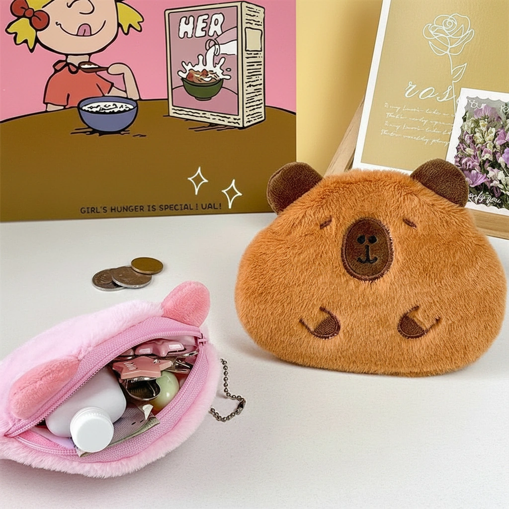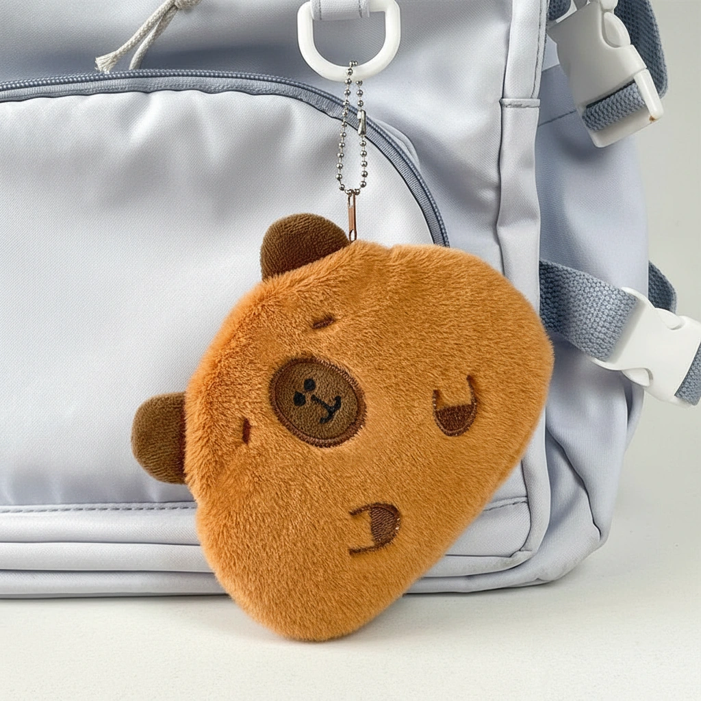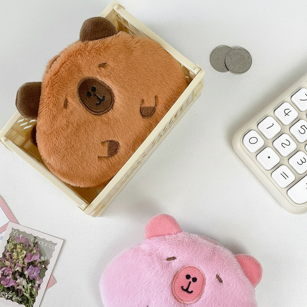 If you prefer a coin pouch that slides easily into a pocket without creating a bulge, this Capybara Purse is the ideal choice. Designed with a flatter profile than our 3D silicone or round plush models, this pouch focuses on maximizing surface area for storage while keeping a slim silhouette. It serves as a gentle home for your daily essentials, protecting them with a layer of soft fur.