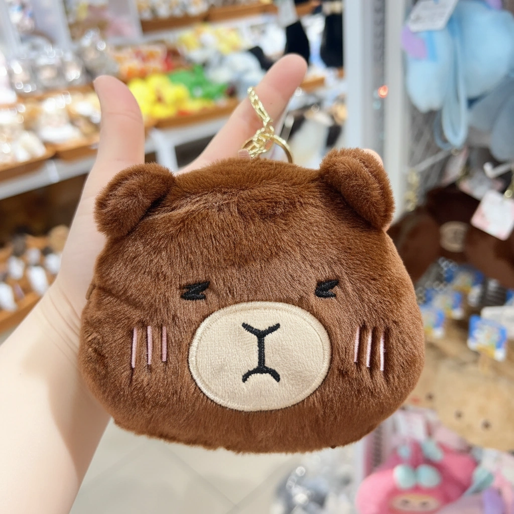 Sleepy Capybara Purse Plush Keychain – Fluffy 3D Head Coin Pouch (2 Colors)