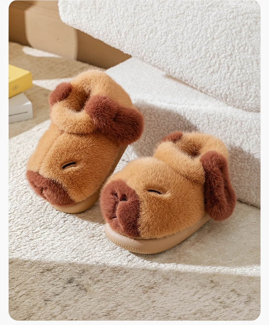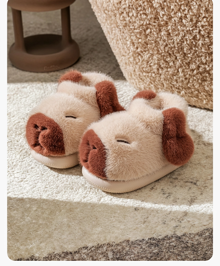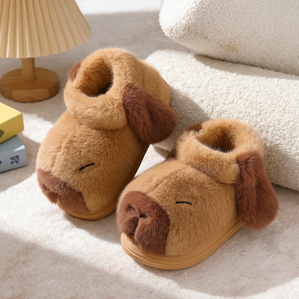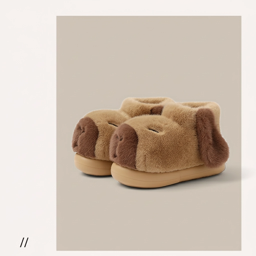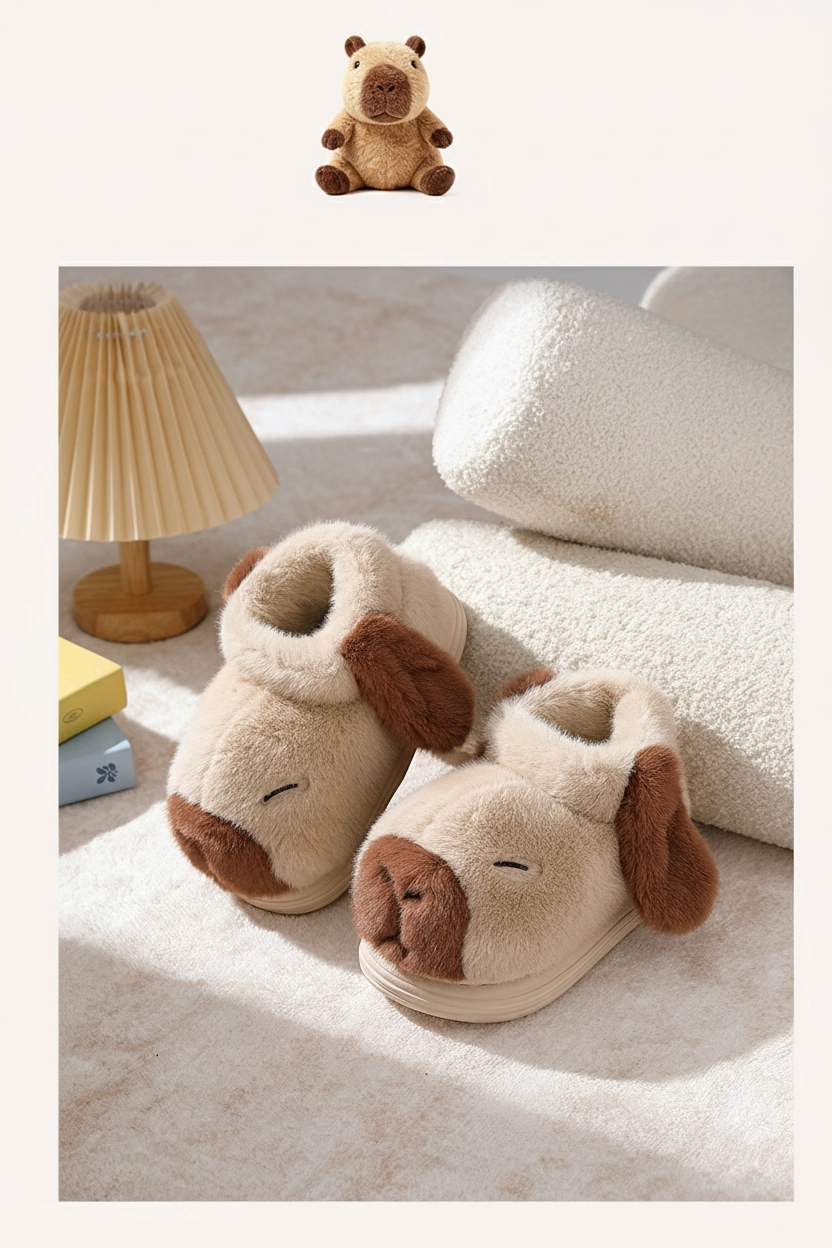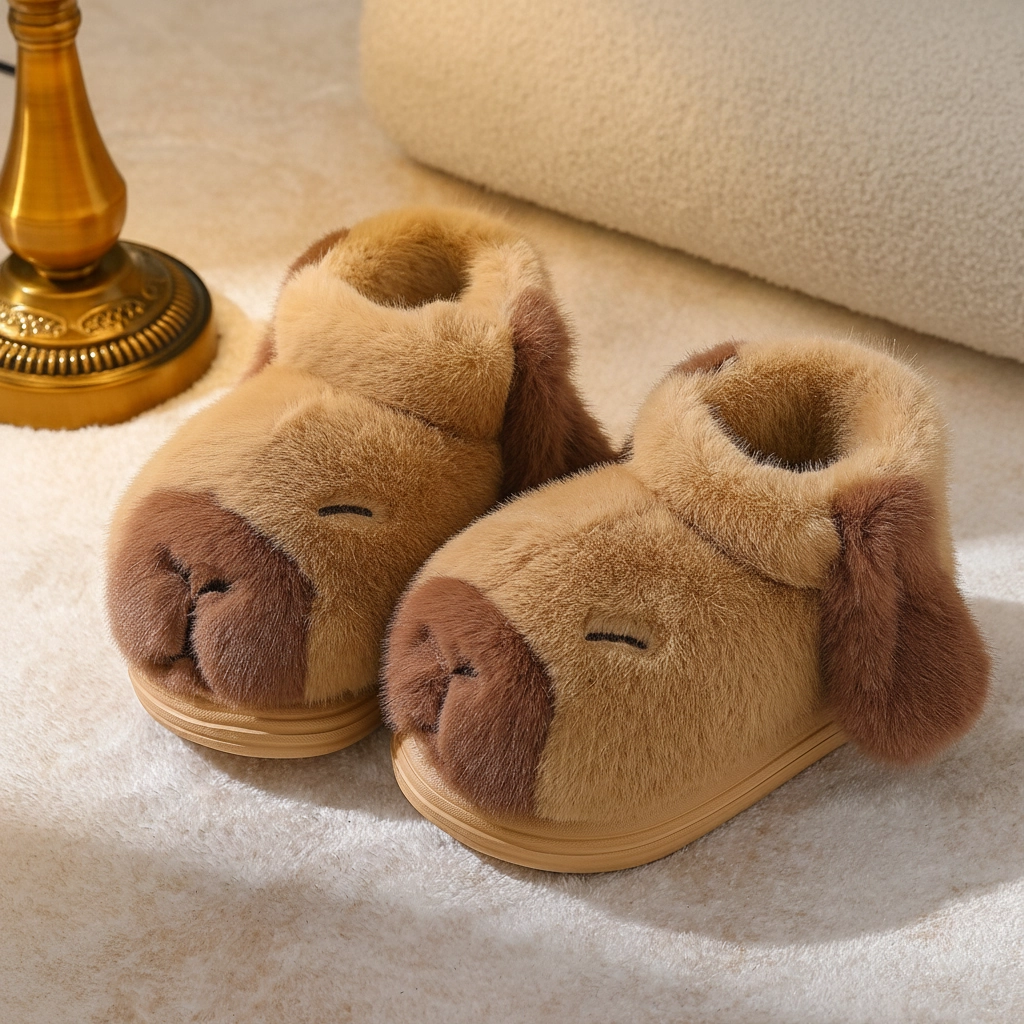 Capybara Plush Booties (Kids & Adults) – Warm Winter Slippers with Floppy Ears
