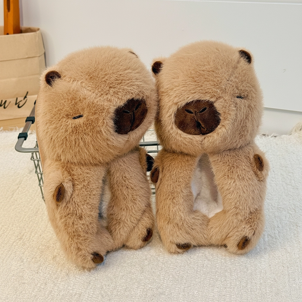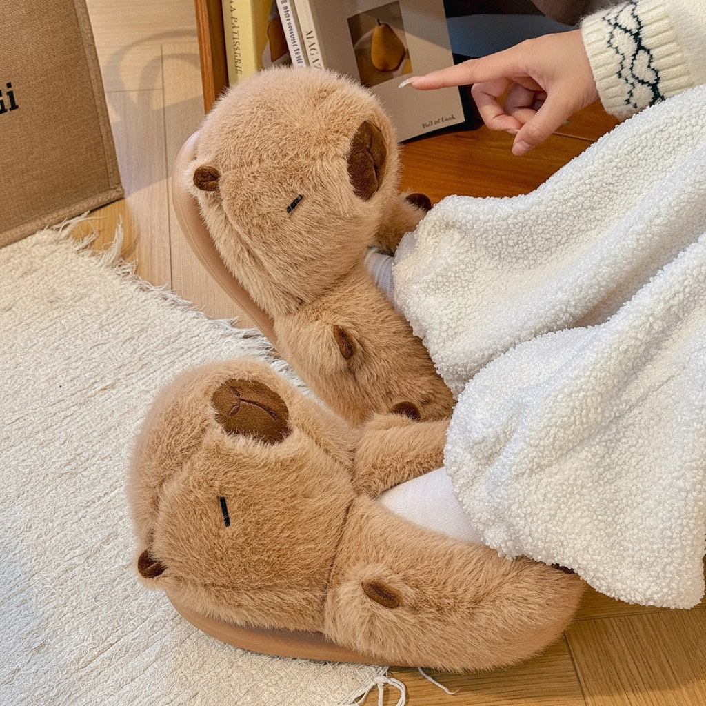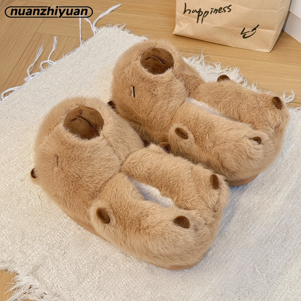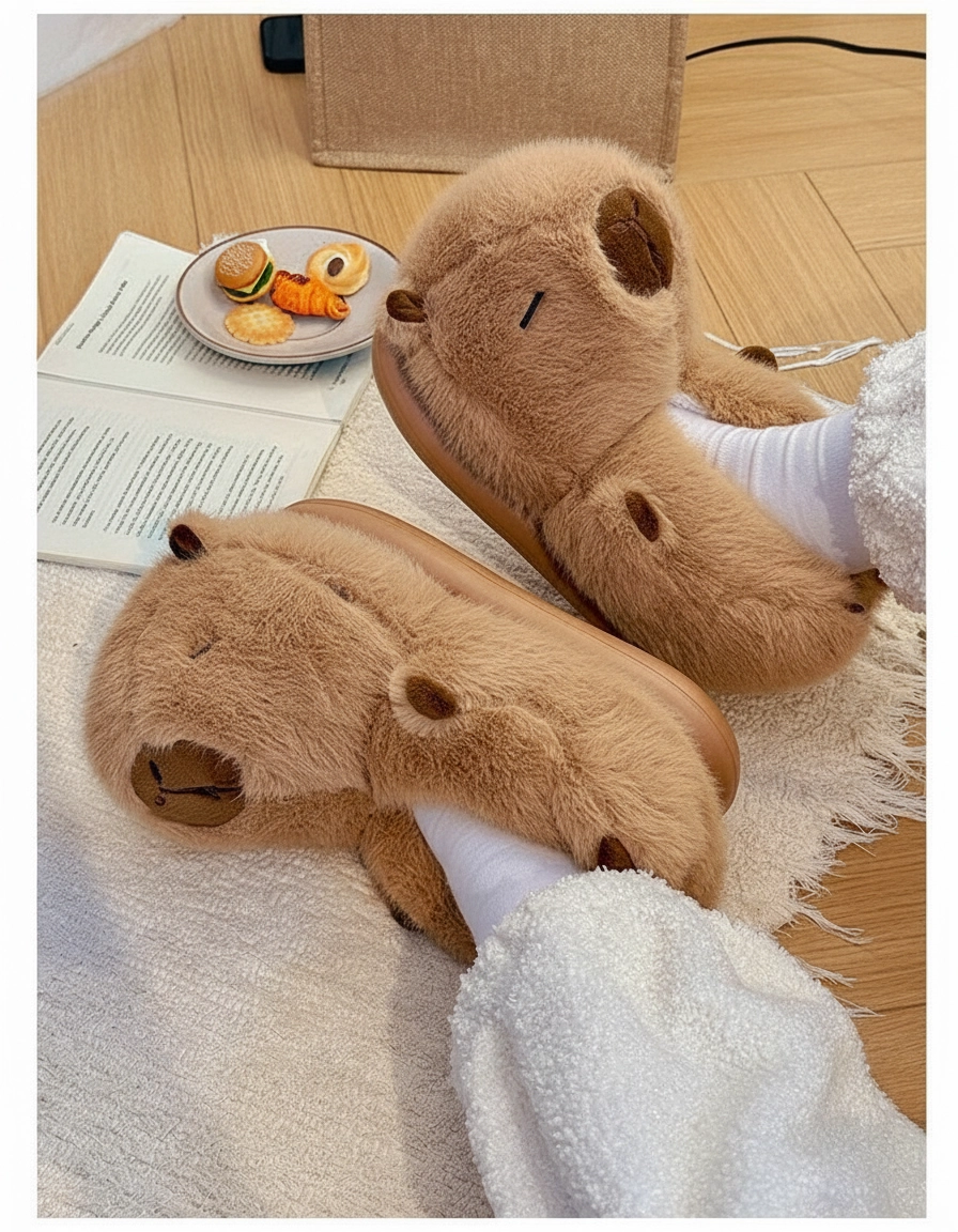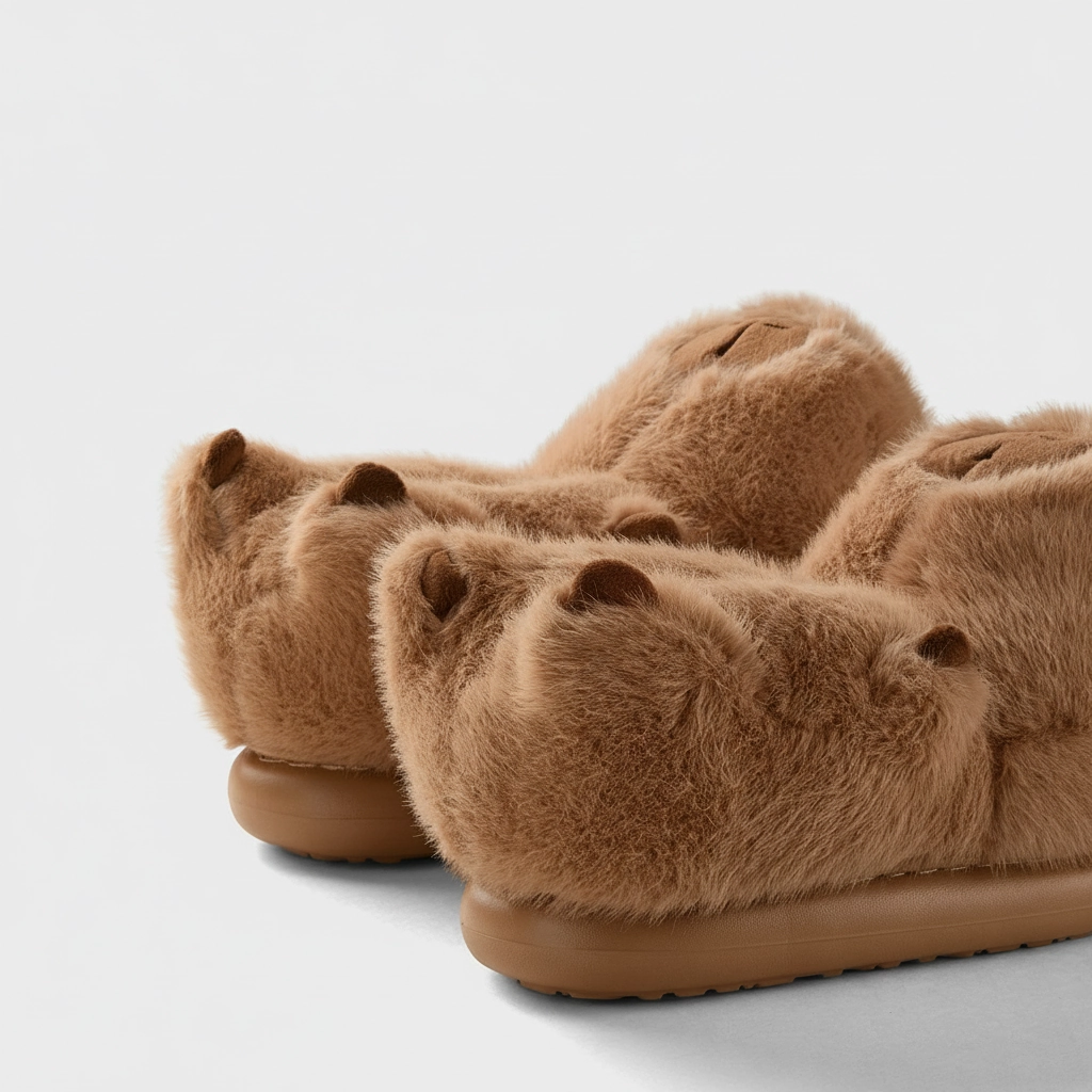 Fluffy Capybara Shoes (1 Pair) – Soft Plush 3D Animal Slippers