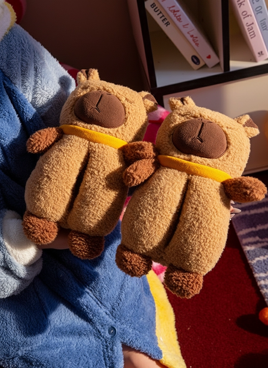 - Signature Yellow Scarf: Each slipper features a cute yellow collar detail, adding a cheerful accent to the classic brown capybara tones.