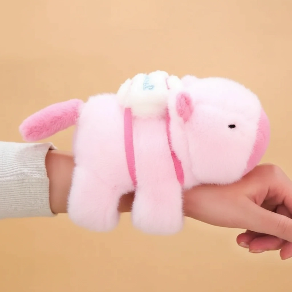 Cute Capybara Slap Bracelet Plush – Soft Animal Wrist Hugger with Baseball Backpack (Pink & Green)
