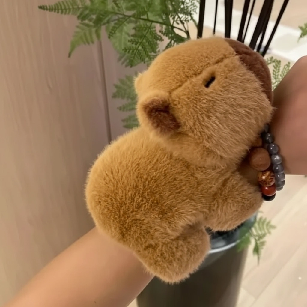 Soft Capybara Snap Bracelet Plush – Sleeping Animal Wristband (Classic Brown)