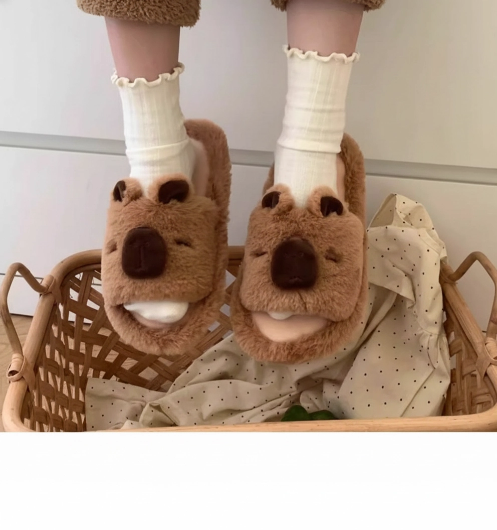 Fuzzy Capybara Plush Slides – Warm Winter House Slippers