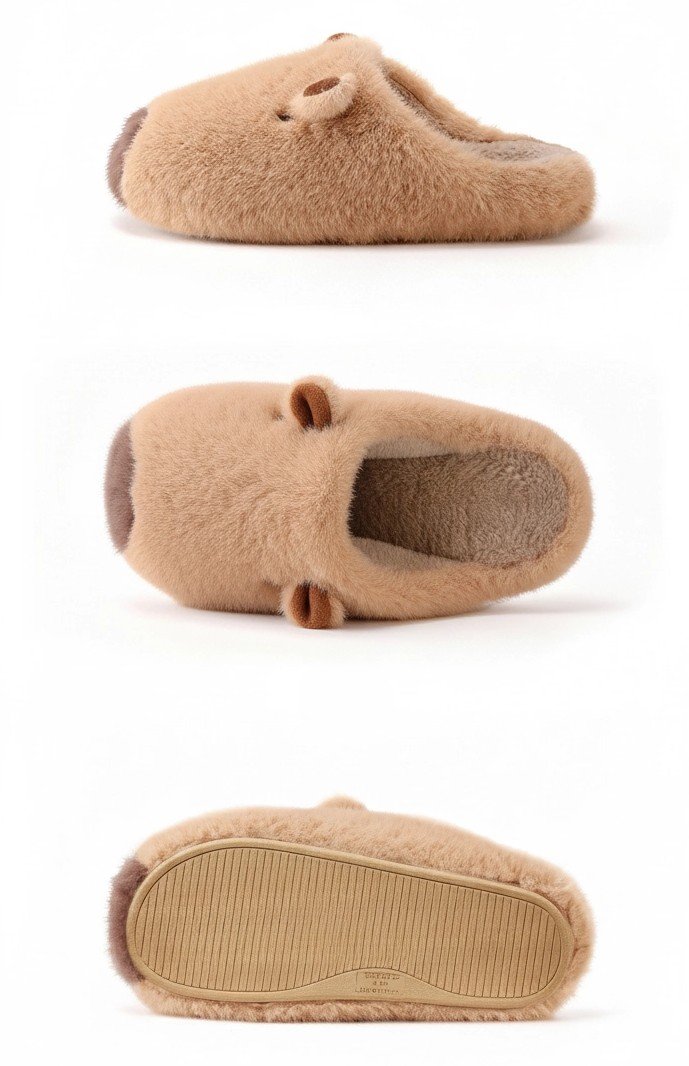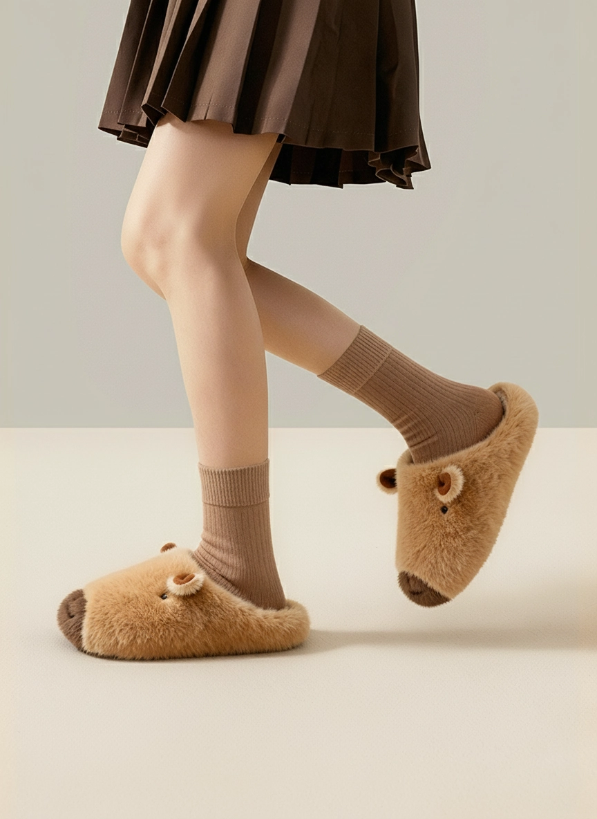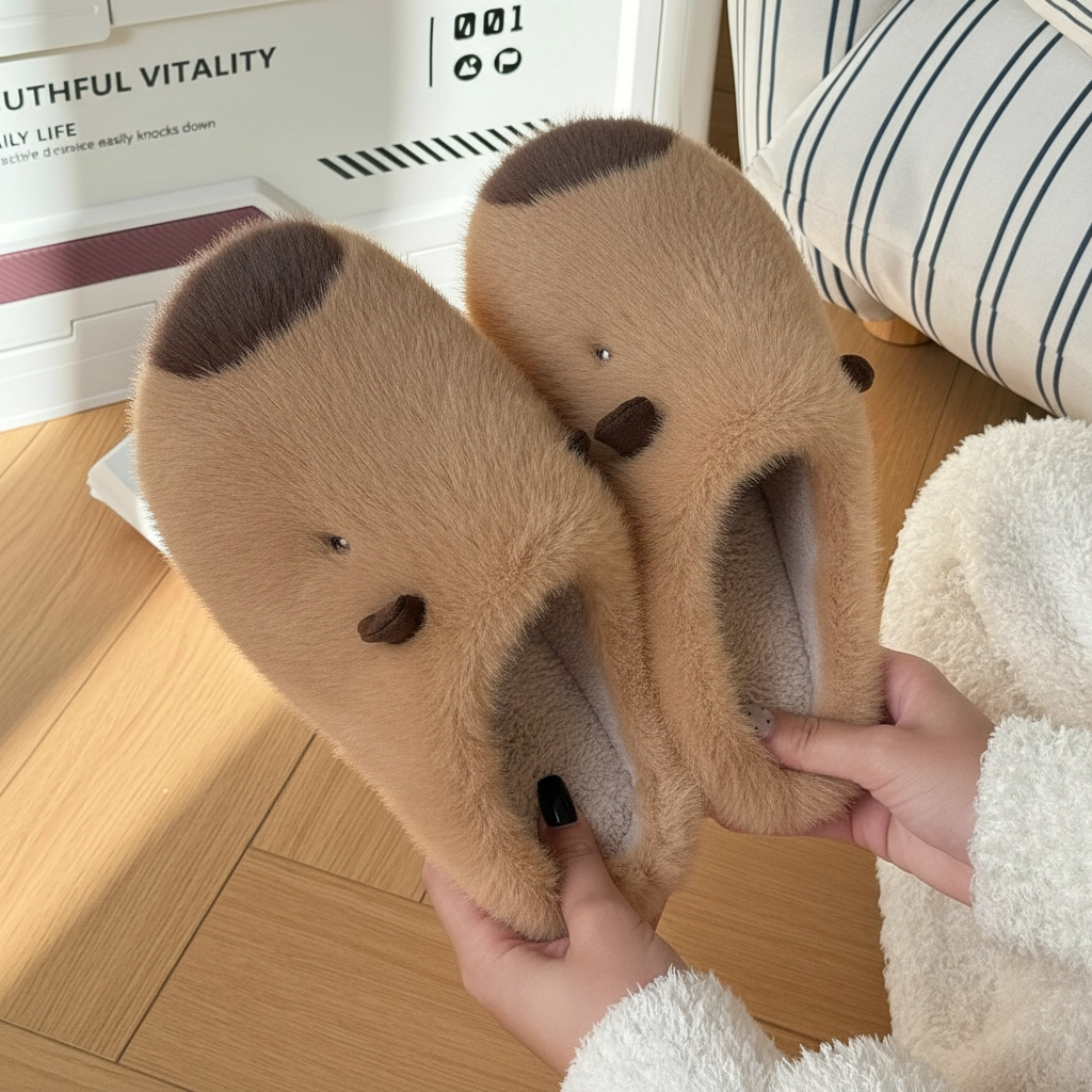 If you are looking for a slipper that looks just like the real deal, you’ve found it. These Realistic Capybara Plush Slippers are designed with attention to detail, featuring the capybara’s signature blunt muzzle in a contrasting dark brown, perfectly placed small ears, and beady eyes.