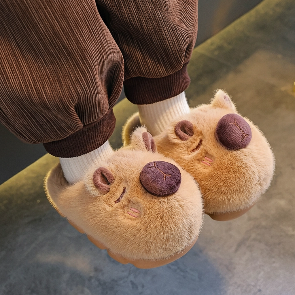 Turn up the cozy factor with these incredibly adorable Kawaii Capybara Plush Slippers. Distinct from our realistic models, this design features a charming cartoon aesthetic with a prominent 3D round nose, sweet blushing cheeks, and sleepy embroidered eyes. They are designed to keep your feet toasty warm while putting a smile on your face.
