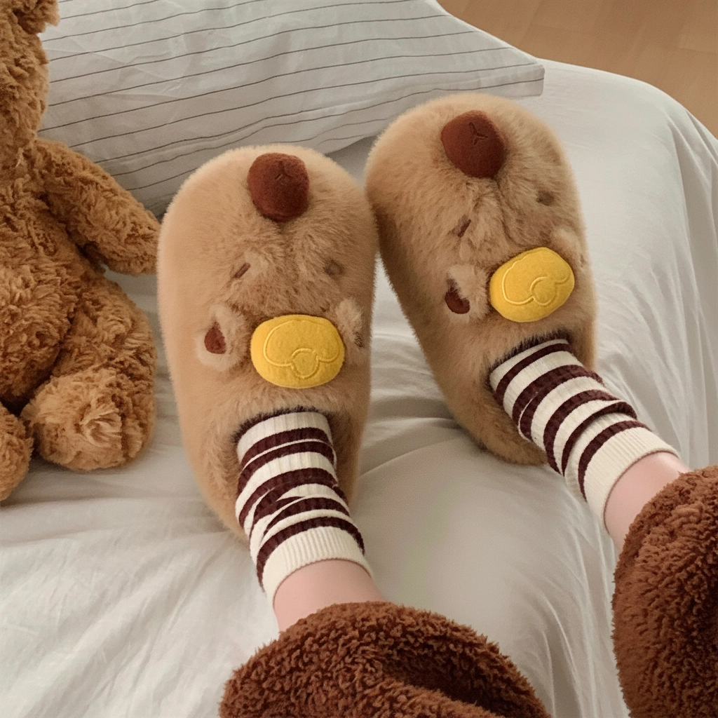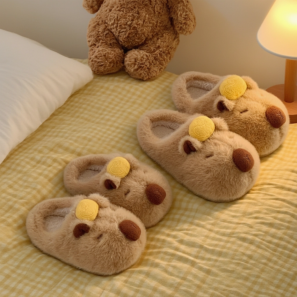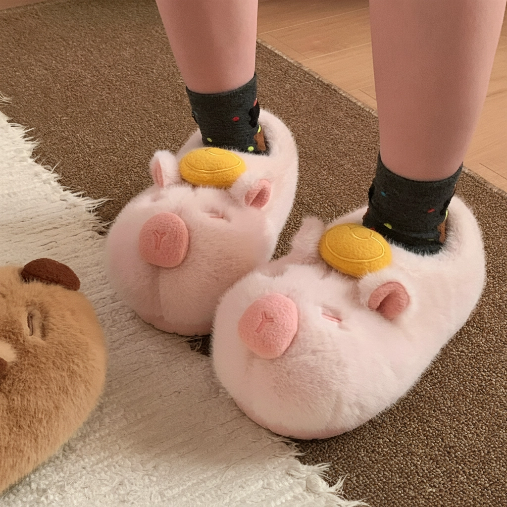 Bring the famous Japanese “capybara in a yuzu bath” meme to life right on your feet! These Yuzu Capybara Plush Slippers feature the internet’s favorite chill animal balancing a bright yellow citrus fruit on its head. It’s a symbol of ultimate relaxation, designed to keep you cozy, calm, and incredibly cute.